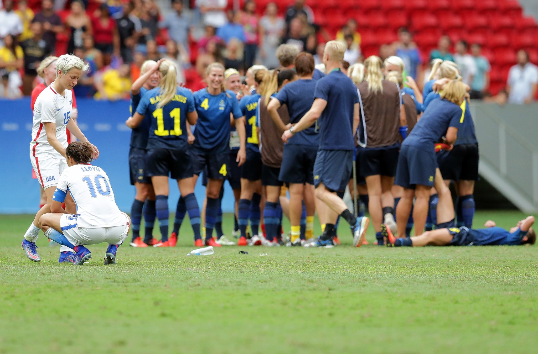 The four-time Olympic gold medalists were upset by Sweden on penalty kicks, 4-3, following a 1-1 draw Friday at Mane Garrincha Stadium in Brasilia.