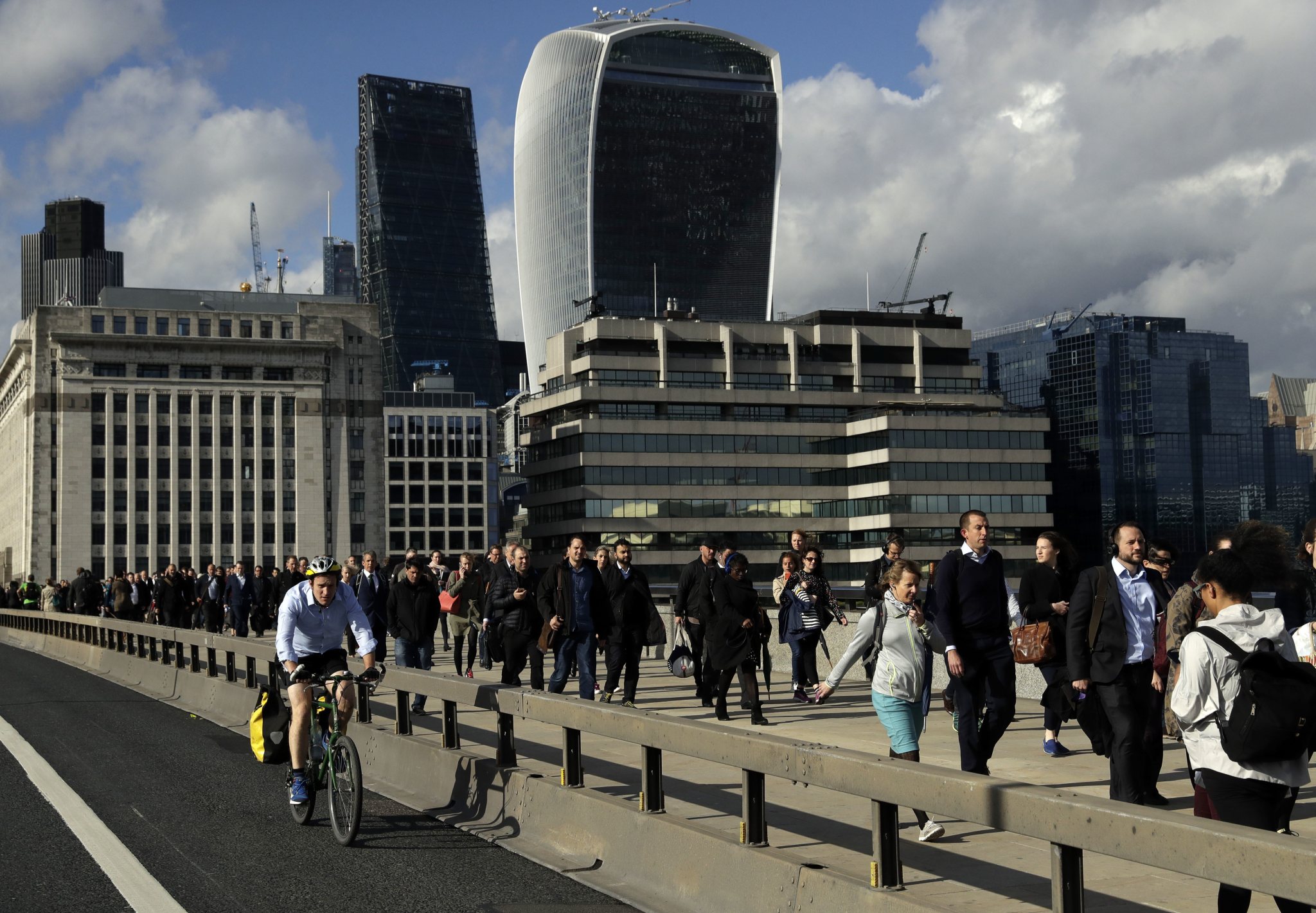 Commuters walk across London Bridge, with new security barriers, after work in London, Tuesday, June 6, 2017. British police on Tuesday named the third London Bridge attacker as an Italian national of Moroccan descent, and Italian officials said they had passed on their concerns about him to British intelligence officials last year. (AP Photo/Matt Dunham)