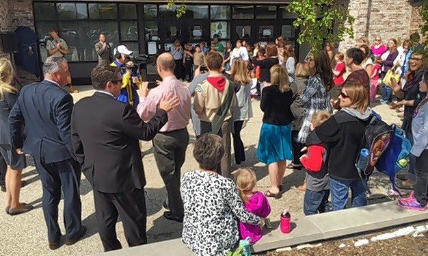 The opening of the little library at Thomas Jefferson drew a big crowd, which ranged from Hoffman Estates Mayor Bill McLeod and Trustee Michael Gaeta, to Scott Thompson, superintendent of Palatine Township Elementary District 15, and Matt Barbini, deputy superintendent.