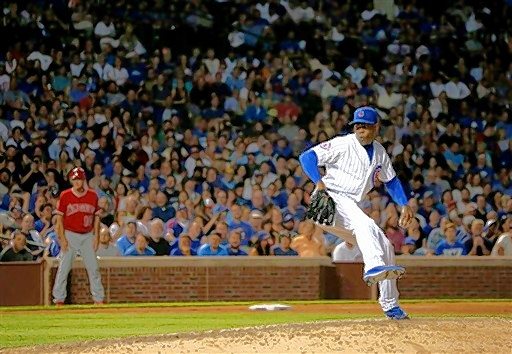 Cubs closer Aroldis Chapman, known for his 100-plus-fastball and frequent strikeouts, recorded a 1-2-3 ninth inning on three pitches, getting a pair of lineouts and a groundout.