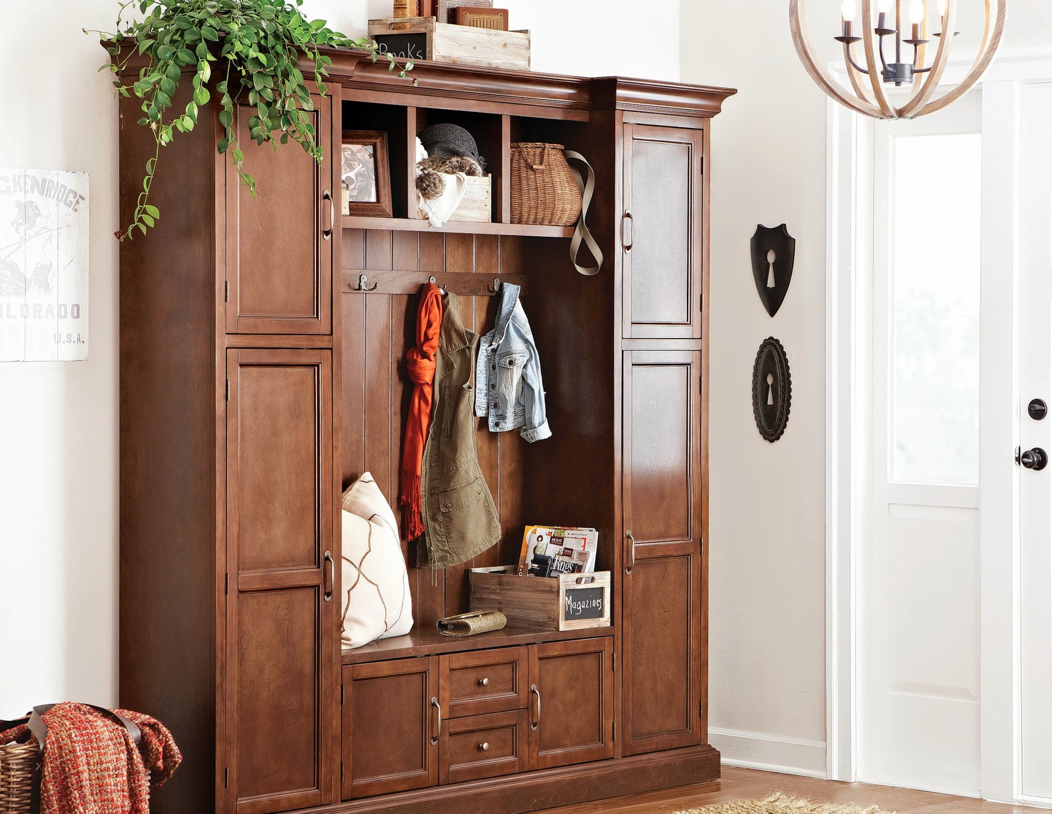 Custom, built-in storage is popular in mudrooms, but there are also many units available in a range of styles and prices.