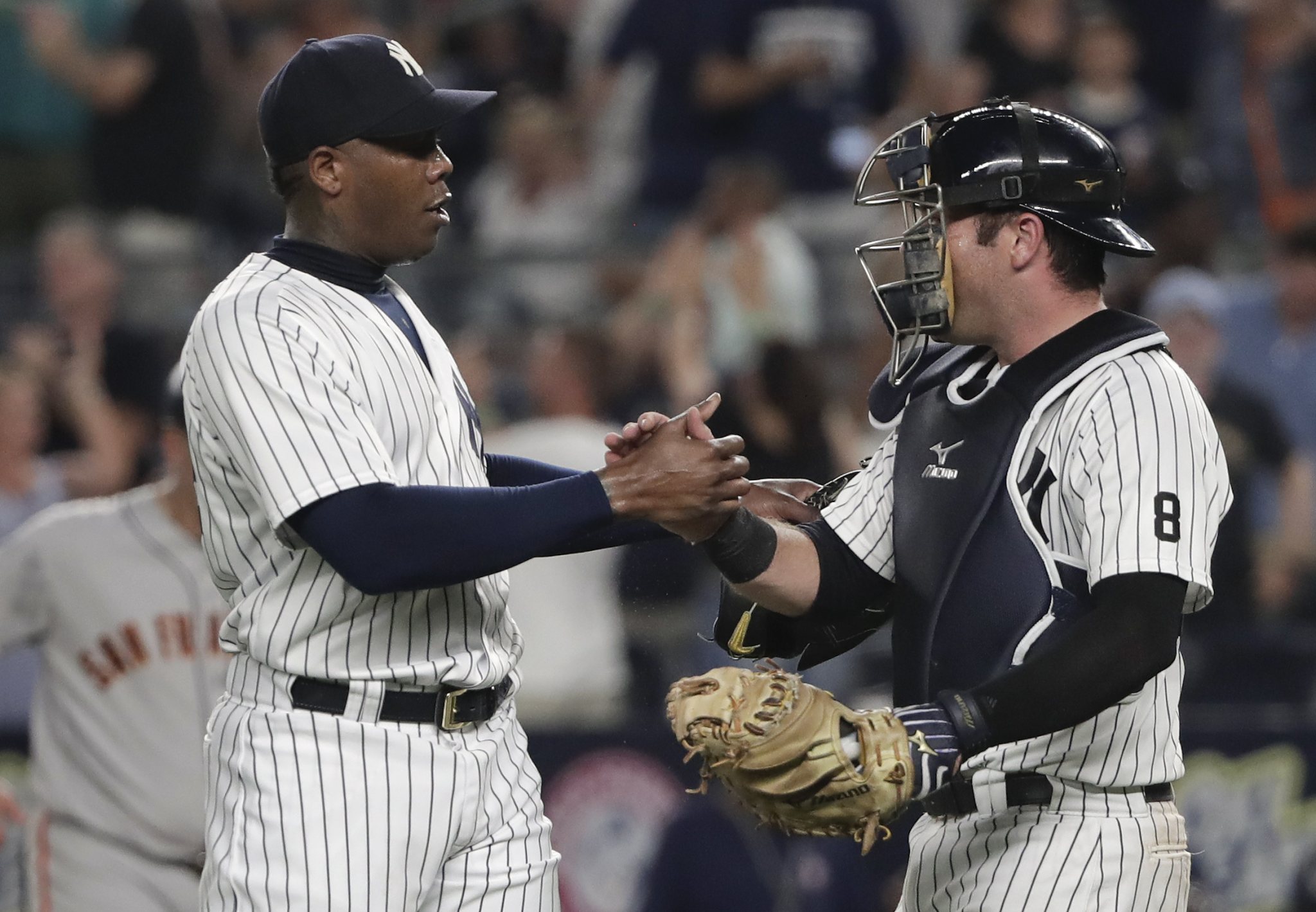 Chapman, 28, is 3-0 with a 2.01 ERA, 20 saves and a WHIP of 0.89 in his first year with the Yankees after he spent part of six seasons with his original club, the Cincinnati Reds. He can become a free agent at the end of this season, and reports say the Cubs may be working on a four-year, $60 million contract extension.