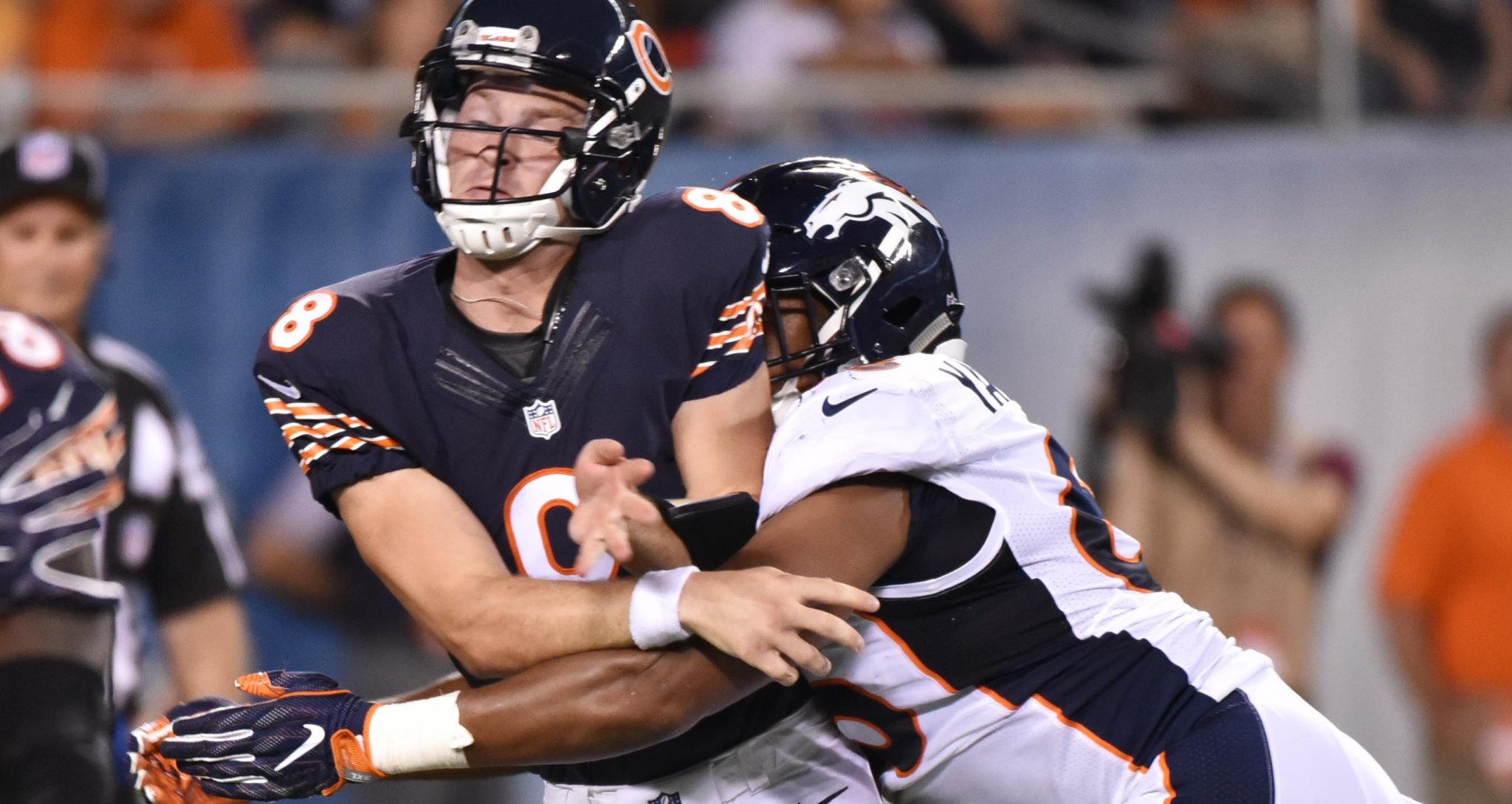 Massie and the first unit allowed Jay Cutler to get sacked twice in the first quarter, and Bears quarterbacks were sacked seven times in all. Fourth-string quarterback Connor Shaw was the only signal-caller to avoid a takedown, but he only dropped back four times while mopping up in the final 6:31.