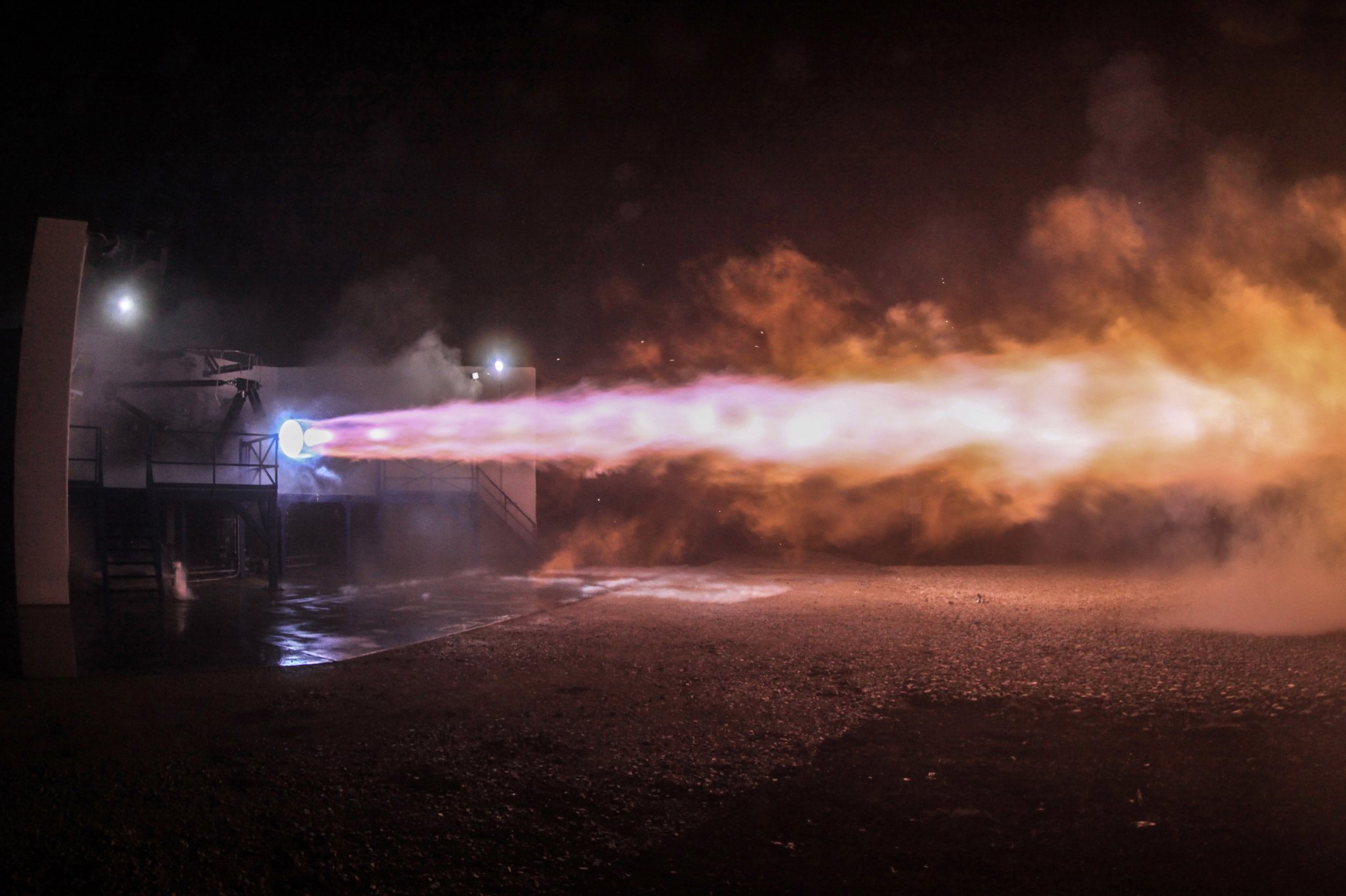 This Sept. 25, 2016 photo made available by SpaceX shows a test firing of the company's Raptor engine in McGregor, Texas. On Tuesday, Sept. 27, 2016, SpaceX founder Elon Musk announced his company's plan for travel to the planet Mars. The engine is being tested for use in the new spacecraft. (SpaceX via AP)