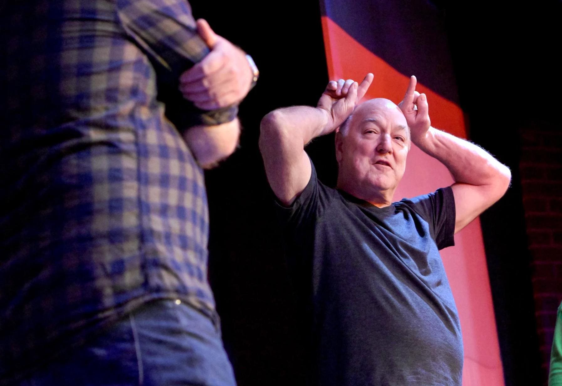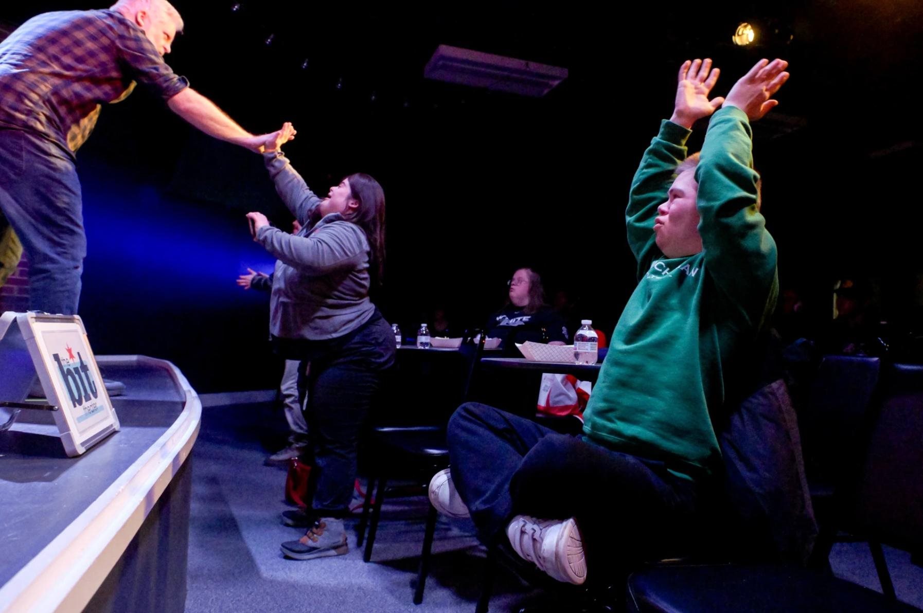 Some of the Bit Theatre ensemble members on stage, who volunteered their time, have special connections to the community. One of them, comedian Bill Weldon, has a son who has Down syndrome.