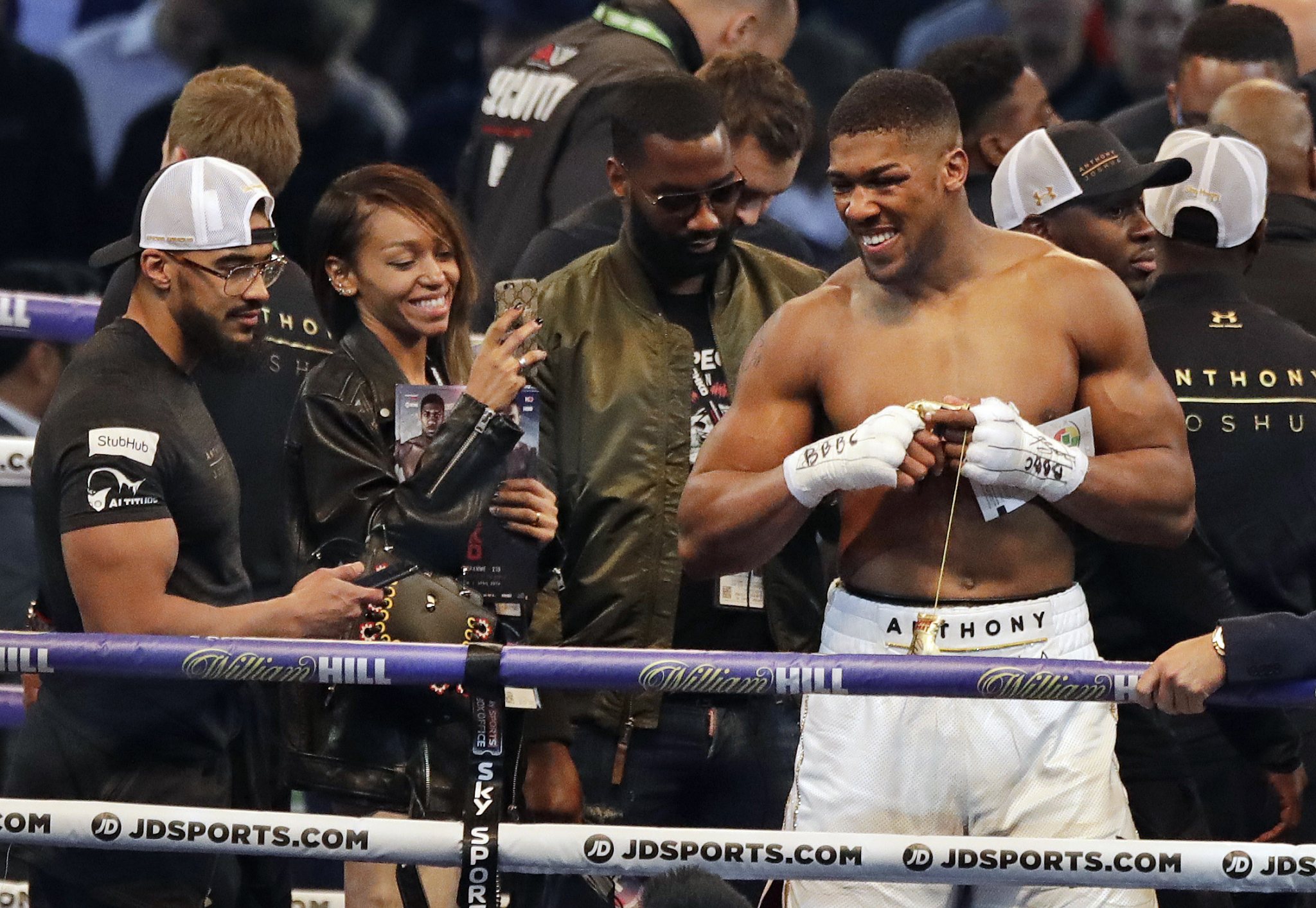 LONDON — Anthony Joshua remained in the ring long after 90,000 of his supporters had filed out of Wembley Stadium, posing happily for pictures with his team and hugging just about everyone he knew.