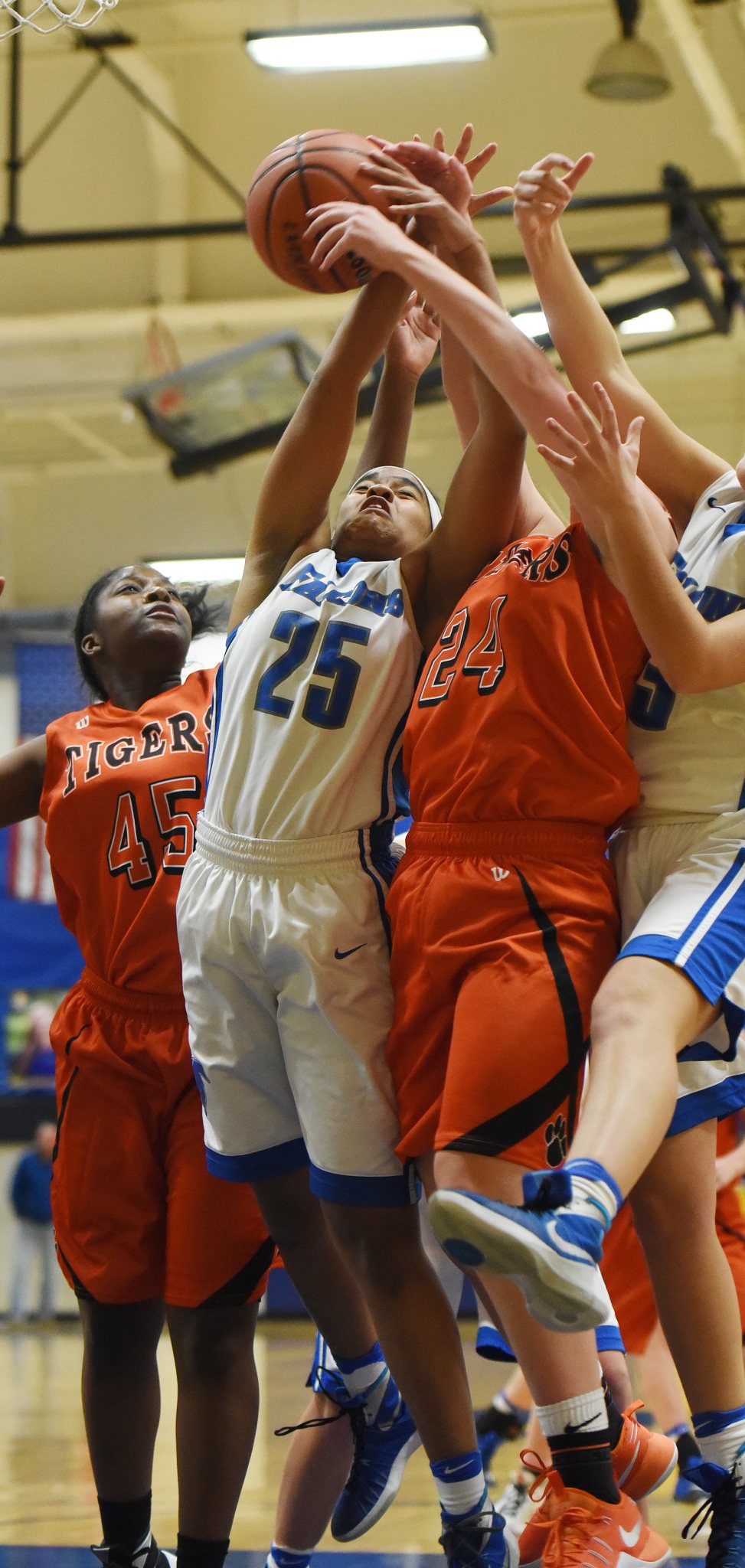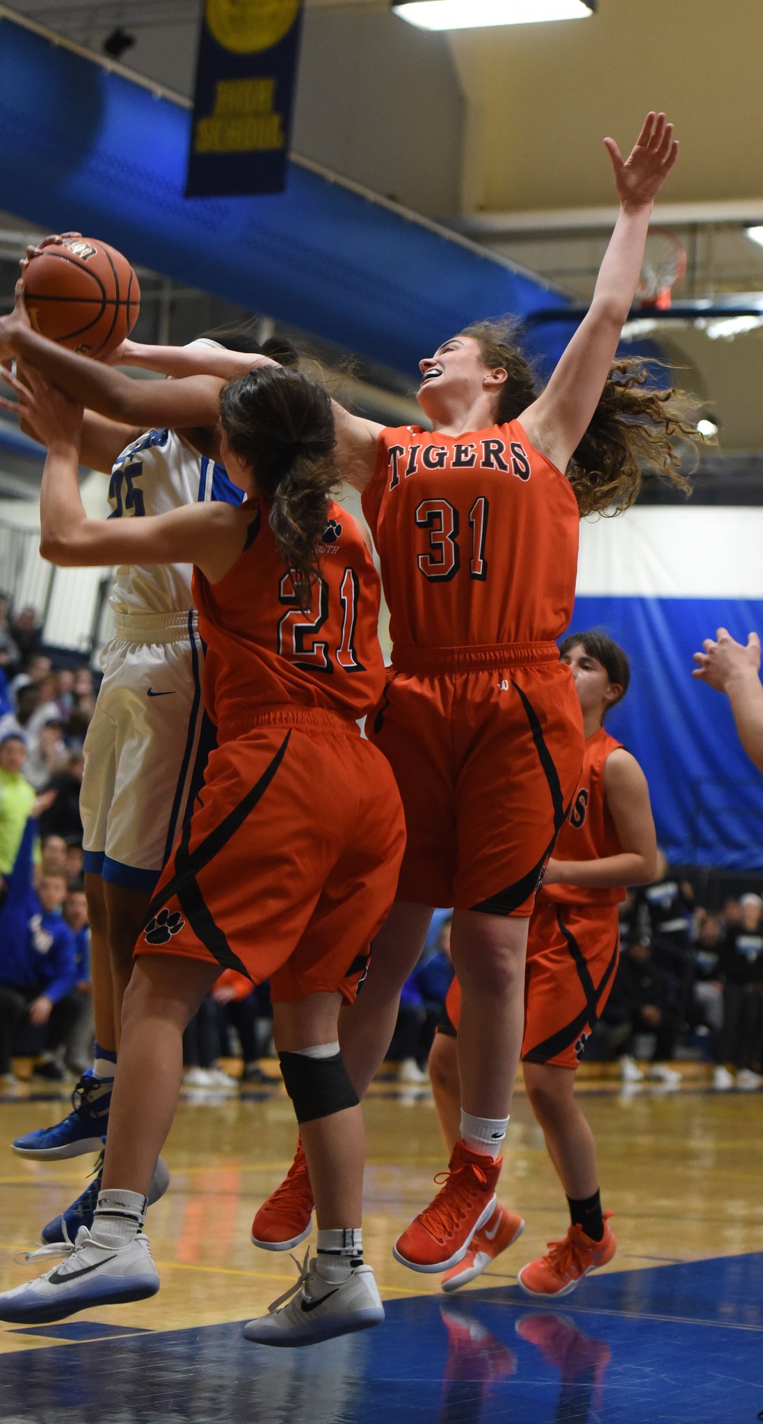 Emma and Sarah Struebing finished with 11 points apiece to lead the Tigers, and Jayla Johnson added 9 in a typically intense game for this rivalry.