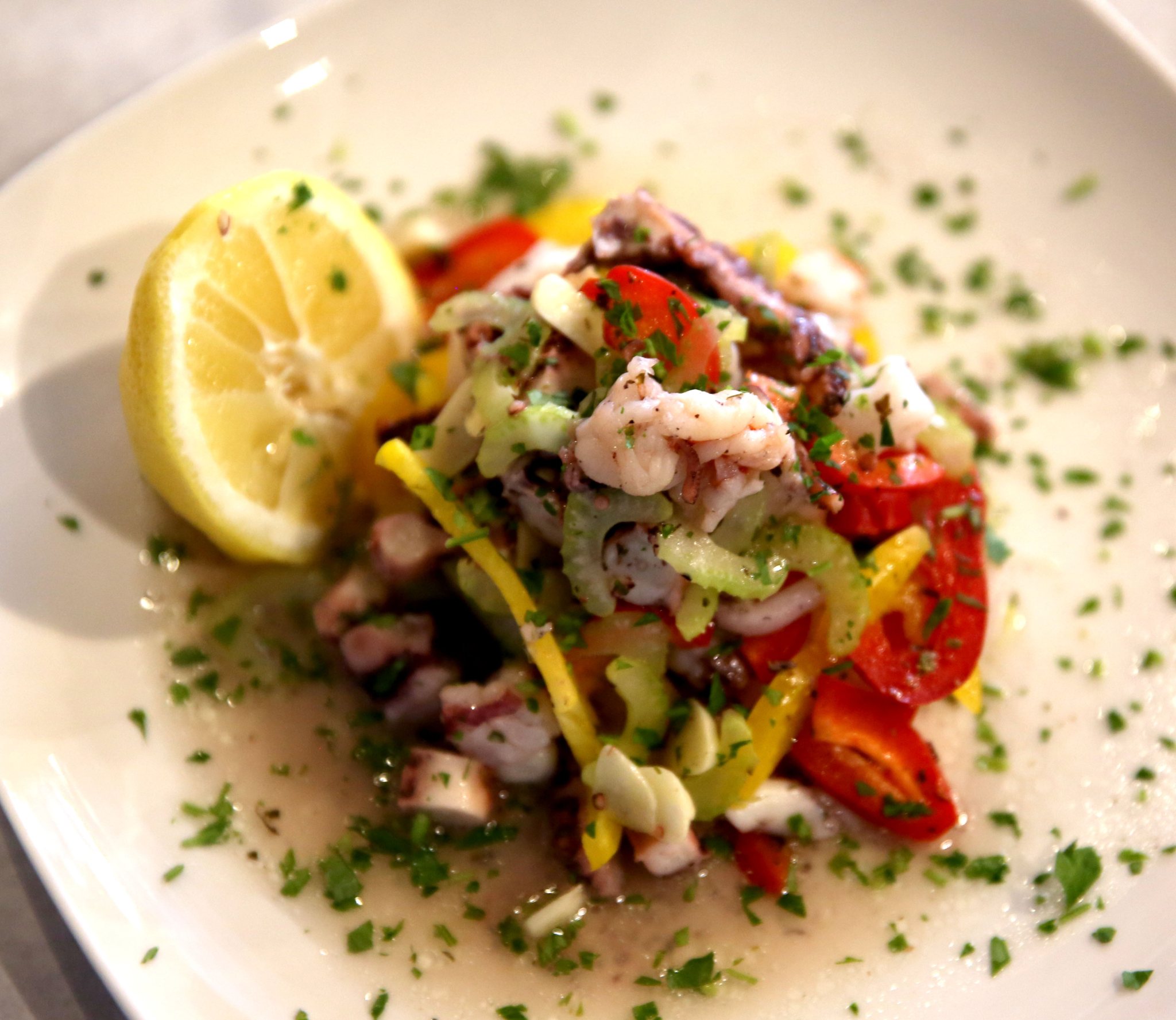 splitting the chilled seafood salad ($15.95). Prepared with a flavorful lemon vinaigrette, this well-conceived course featured calamari, octopus and shrimp.