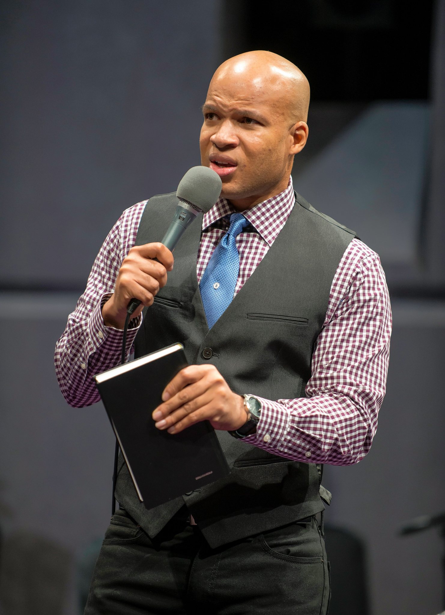 At least one audience member attending the press opening for Steppenwolf Theatre’s Chicago-area premiere complied. But I’ll wager others considered, however briefly, the request, forgetting momentarily that Steppenwolf’s North Halsted Street home is not the Middle America megachurch where Hnath’s weighty drama unfolds.