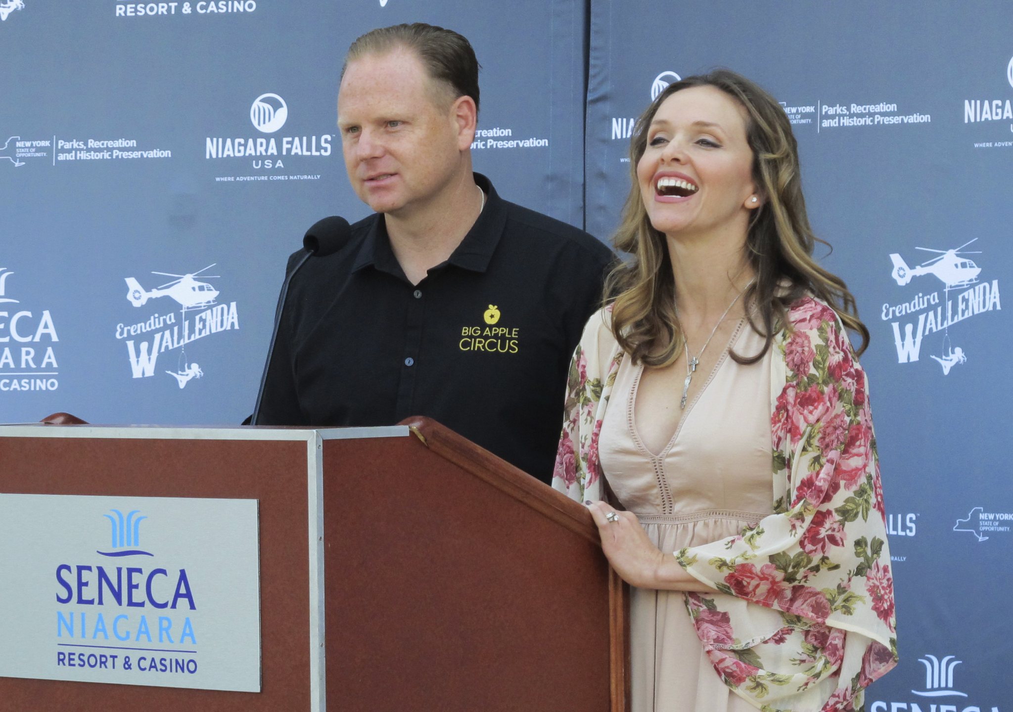 “She’s a ballerina in the air,” Nik Wallenda said during a news conference with his wife at the Seneca Niagara Casino.