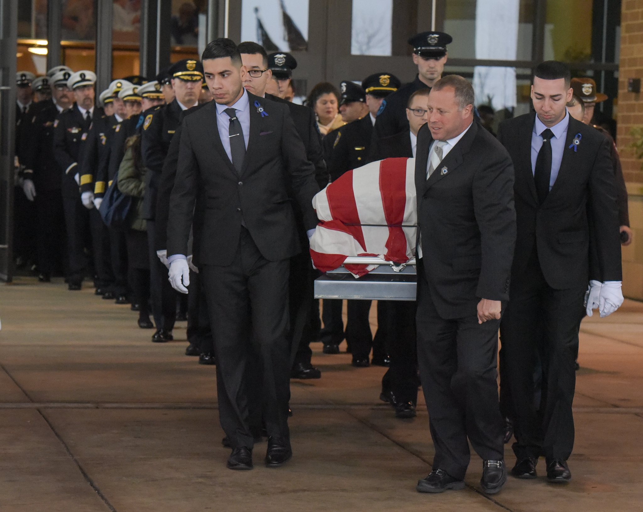 A funeral procession of about 1,000 police and fire vehicles then headed to Murrell’s final resting place in Oakridge-Glen Oaks Cemetery in Hillside.