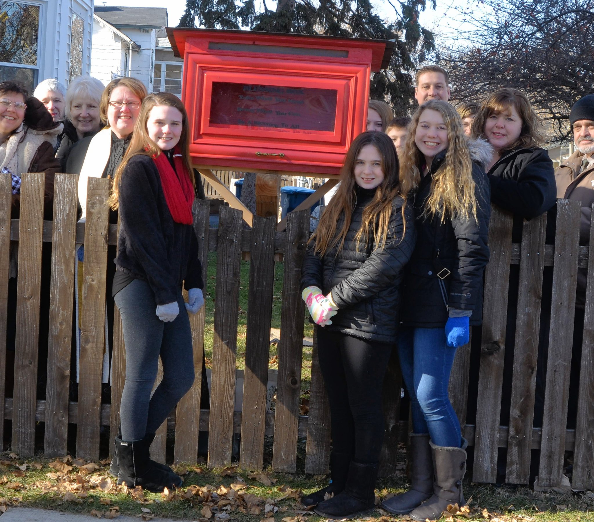 Sort of like the Little Free Library movement, and with an even more charitable sentiment, a “Blessing Box” now is in the yard at St. John United Church of Christ in Aurora. Jen Charapata and daughters Erin, Megan and Katelyn set up and filled the small, wooden, weatherproof box with nonperishable foods and pet supplies for needy east-side residents.