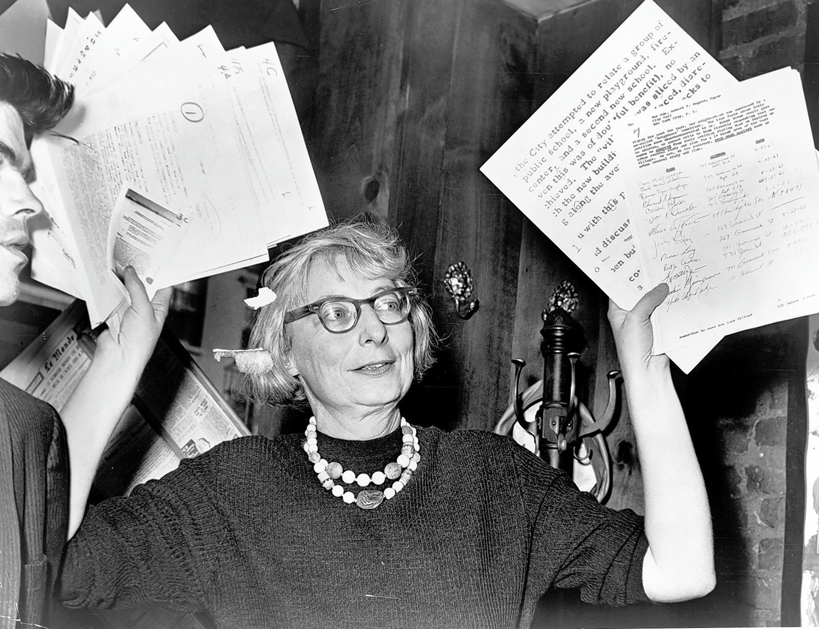 Jacobs waged war on the prevailing wisdom of the day with her provocative 1961 book “The Death and Life of Great American Cities.” Her main point was simple: A city is about people, not buildings. With a blunt bob haircut and oversize glasses, she didn’t look like the typical highbrow intellectual, and her opponents tried to dismiss her. One book critic called her “a housewife from Hudson Street.” She may not have been a city planner, but neither was she a homemaker. Quickly, she proved she could be an activist as well.