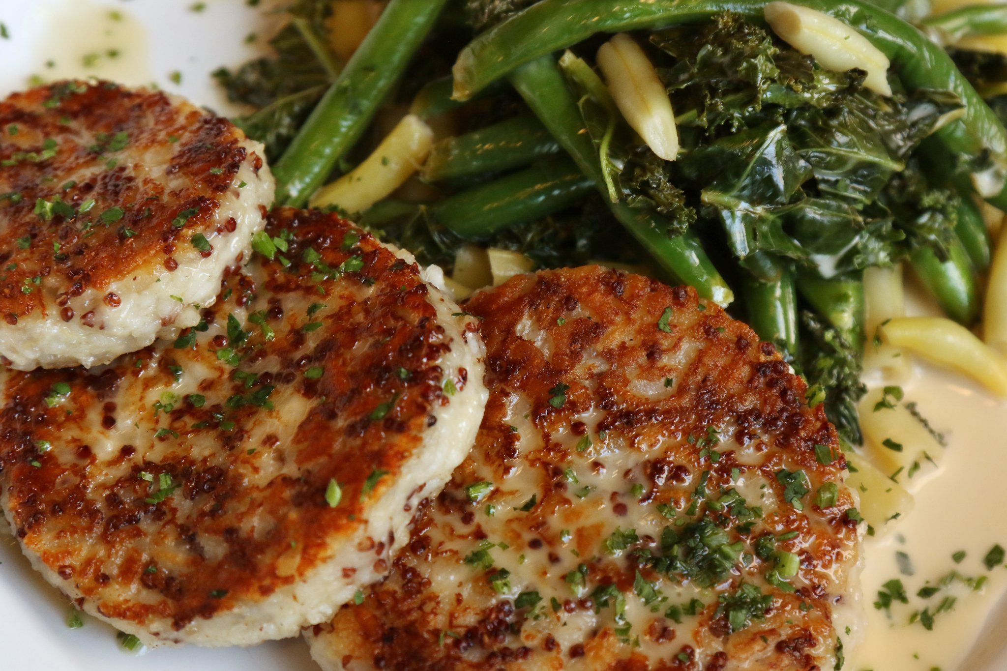 Likewise, the risotto and quinoa cakes were paired with a mountain of light, tender-crisp beans and kale. The cakes were a treat: crispy on the outside, creamy on the inside. The beans, Patel said, will soon be replaced by locally sourced winter-friendly vegetables.