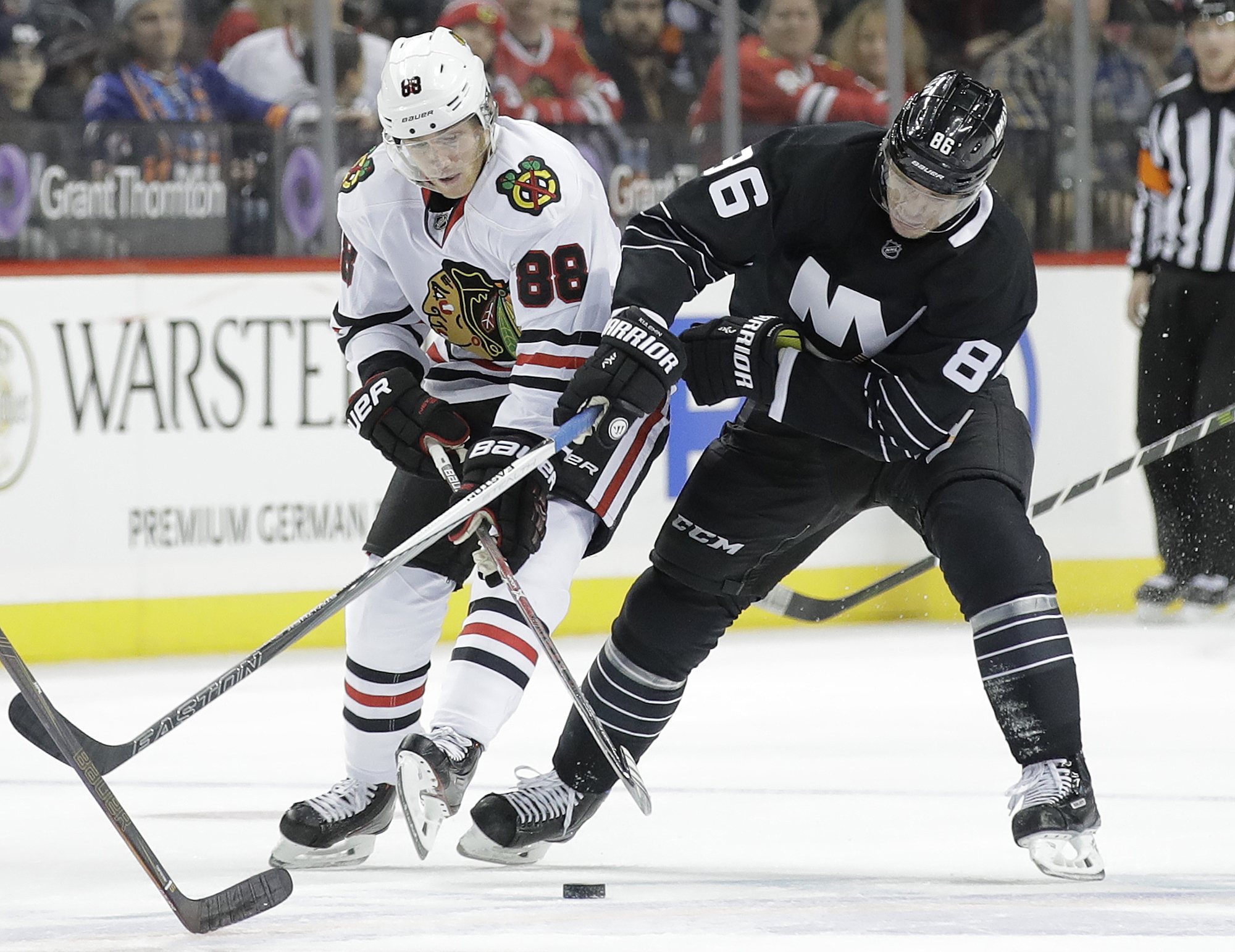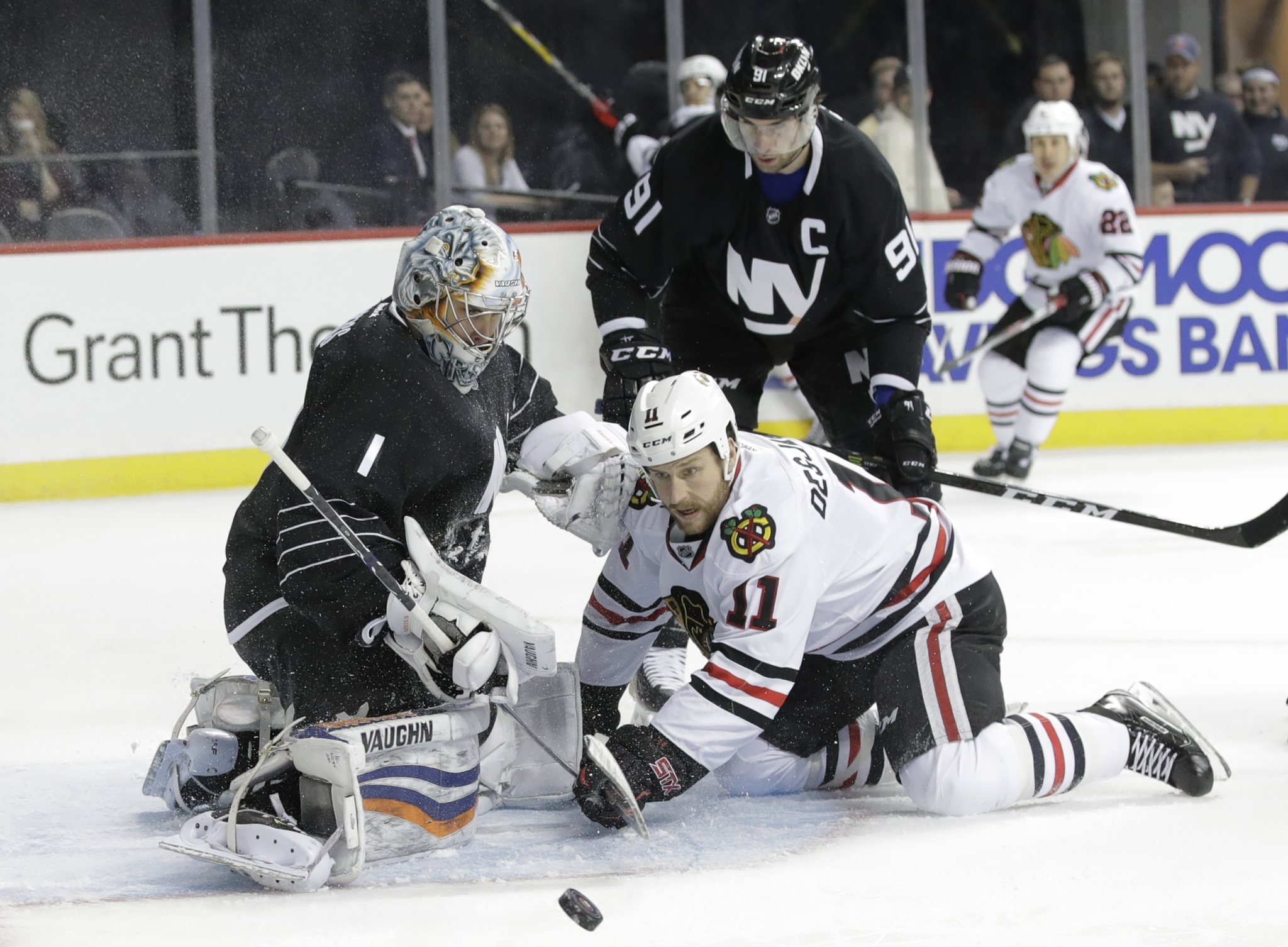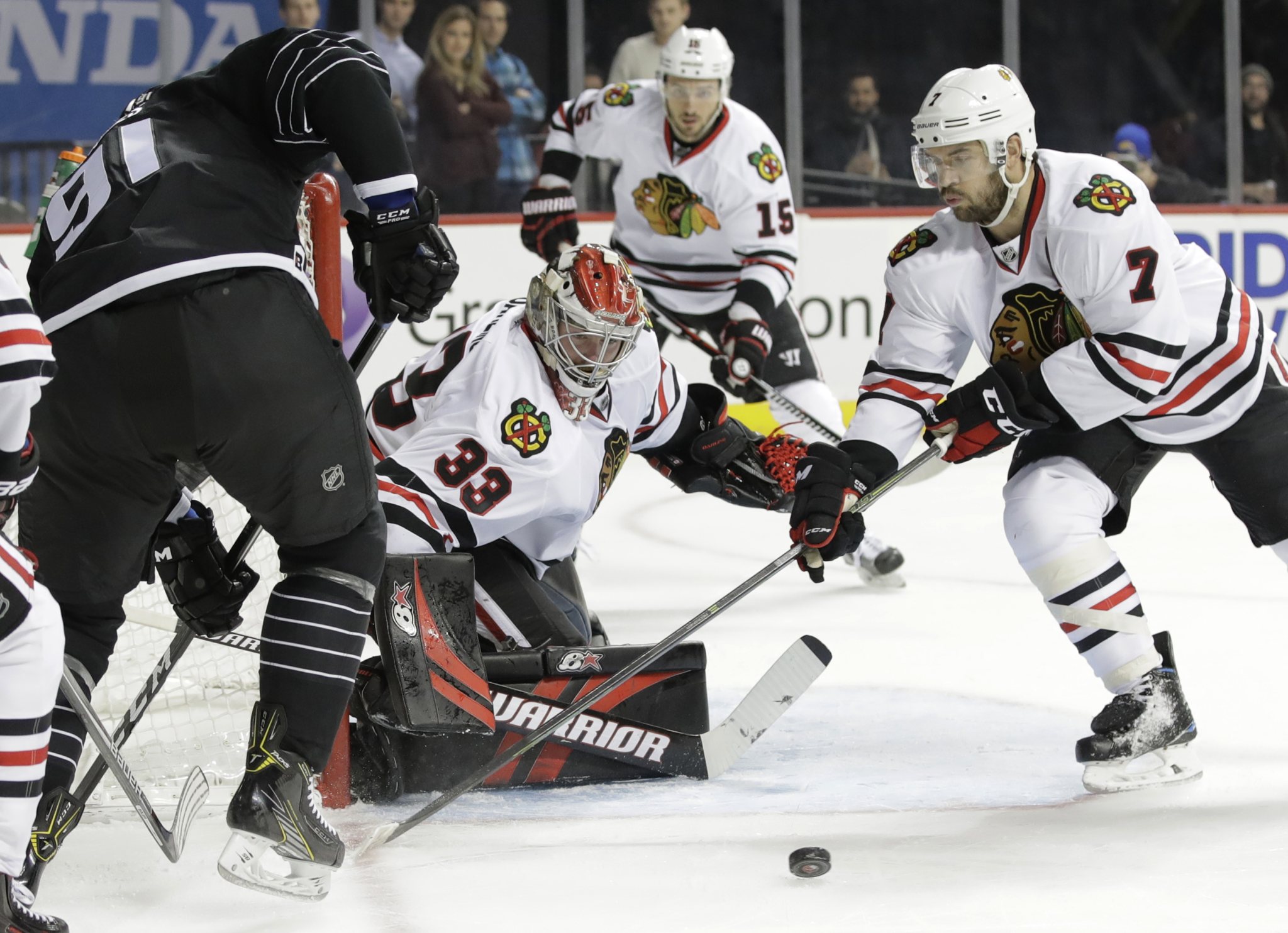 Panarin cut the deficit in half at 9:47. Panarin, who won the Calder Trophy last season as the league’s best rookie, one-timed a laser shot off a pass from Brent Seabrook past Greiss.