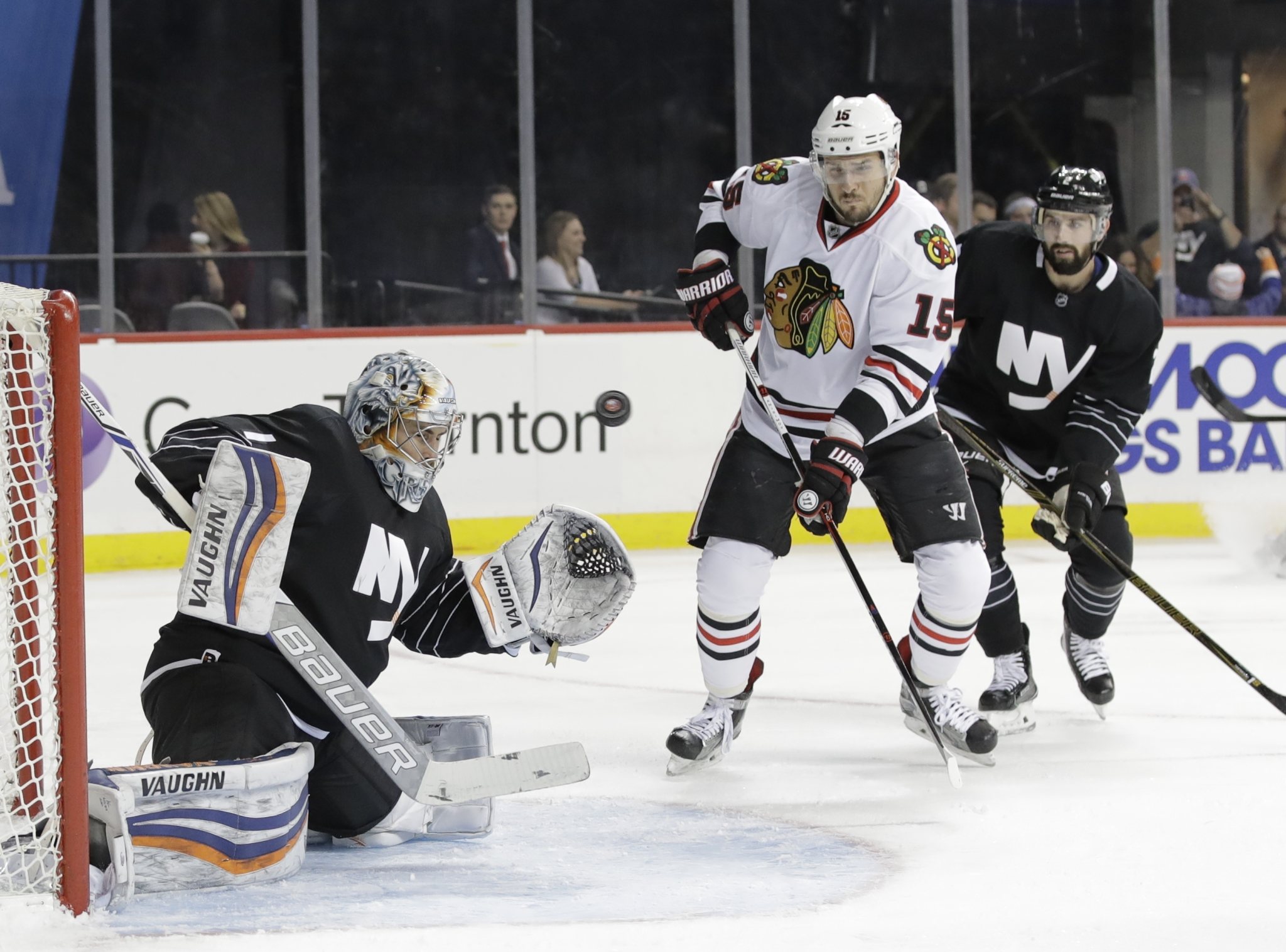 NEW YORK — Richard Panik scored the tiebreaking goal with 6:13 left in the third period to lift the Blackhawks over the New York Islanders 5-4 on Thursday night.