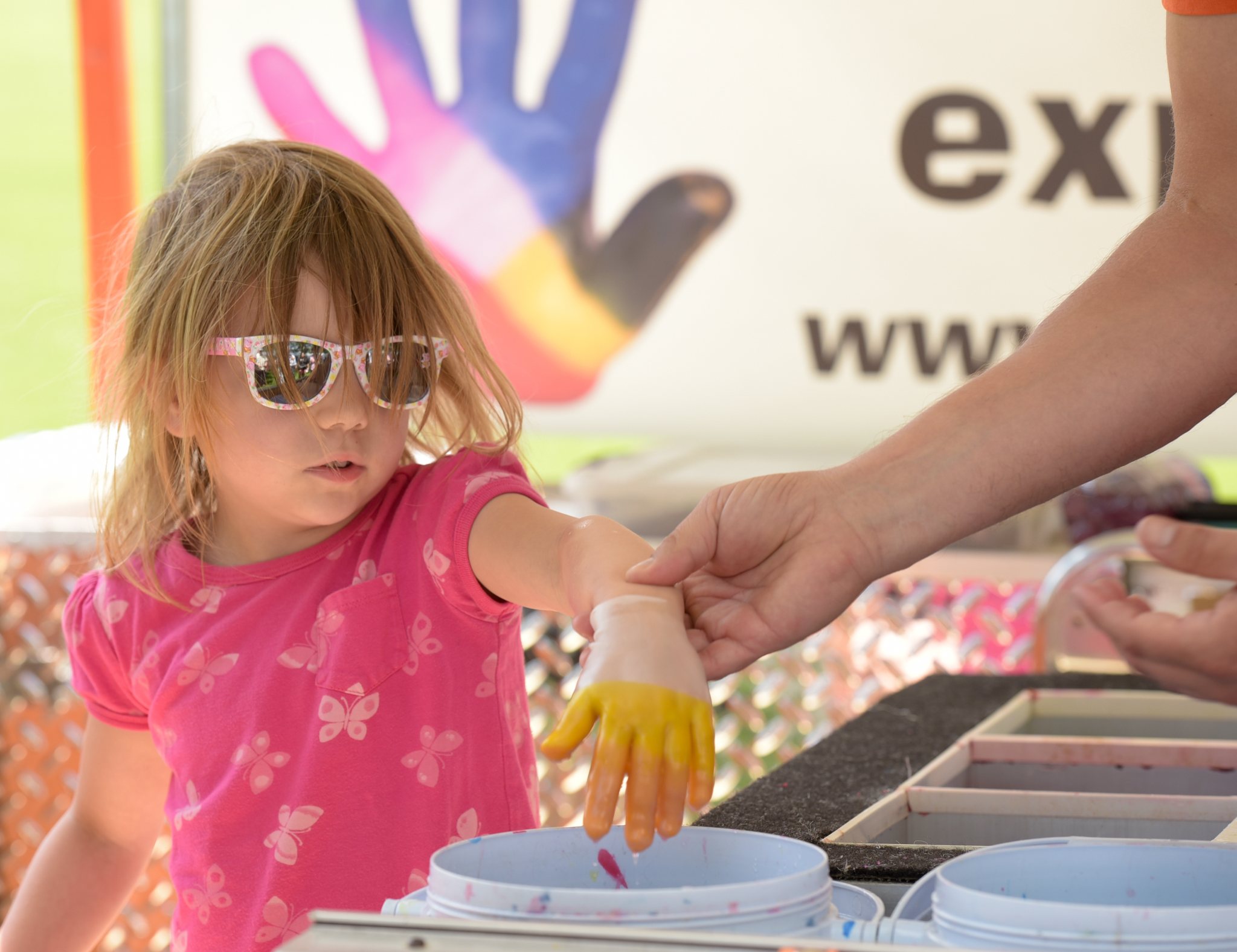 Morgen Rohlwing, 4, of Island Lake has a rainbow-colored wax hand made Sunday during her visit to Cantigny Park’s annual Art in Bloom art show. (Mark Black/mblack@dailyherald.com)