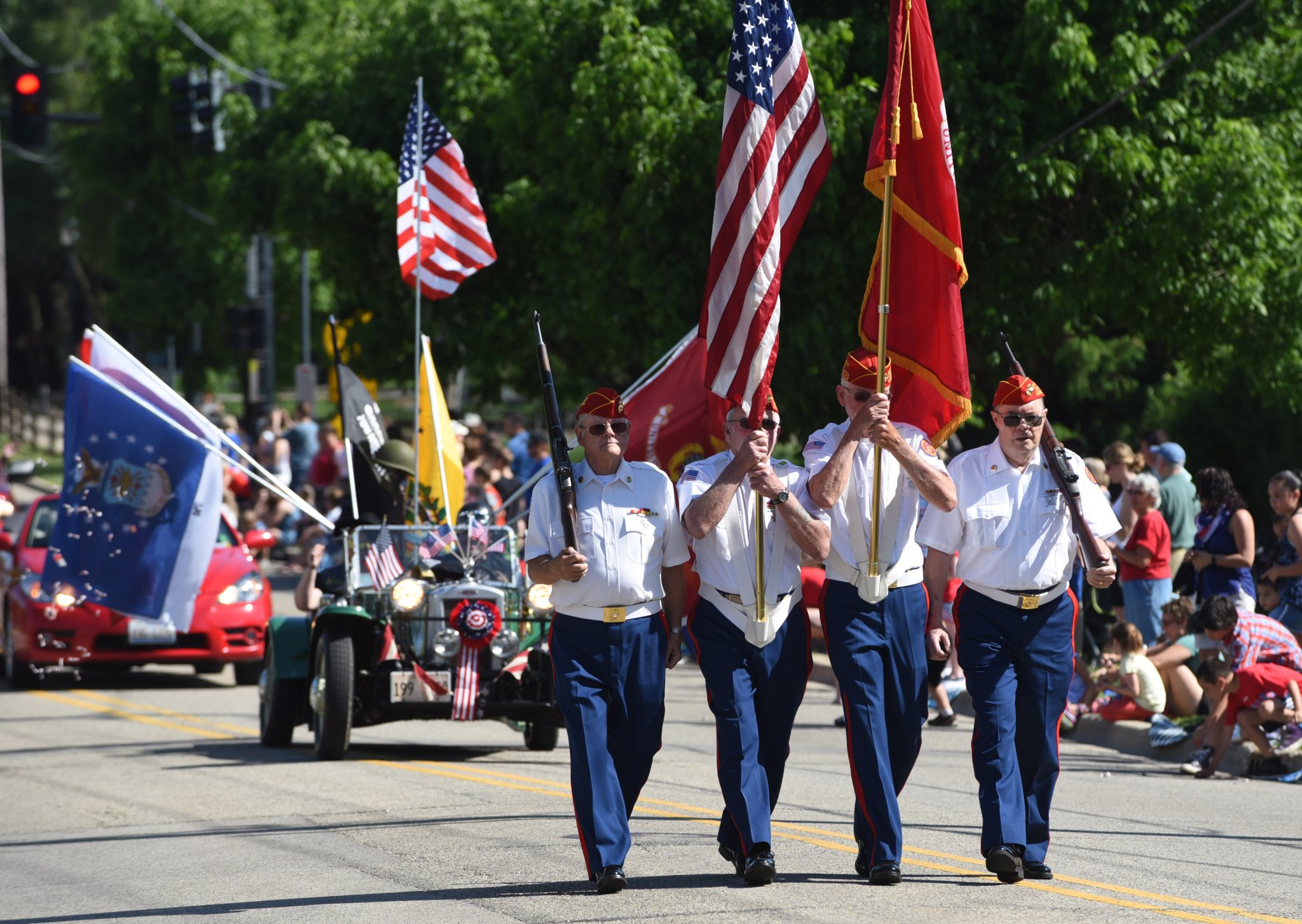 Barrington: 10:30 a.m. Parade starts with a flag raise and salute at the Veterans Monument at Main and Cook streets and proceeds west on Main Street and south on Dundee Avenue to Evergreen Cemetery, where a service will be conducted by the American Legion and Veterans of Foreign Wars, including a reading of the names of veterans from Barrington who have passed in the last year, poems, songs from Barrington choir students, a 21-gun salute, and taps. Visit www.barrington-il.gov.