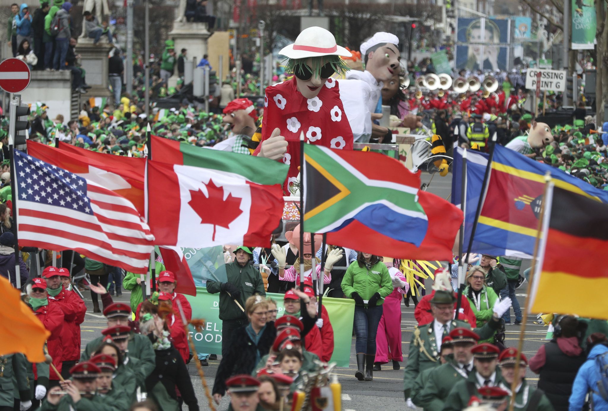 Irish President Michael D. Higgins and his wife, Sabina, and other dignitaries watched the hour-long procession from a bandstand. The spectacle was heavy on artistic flair.