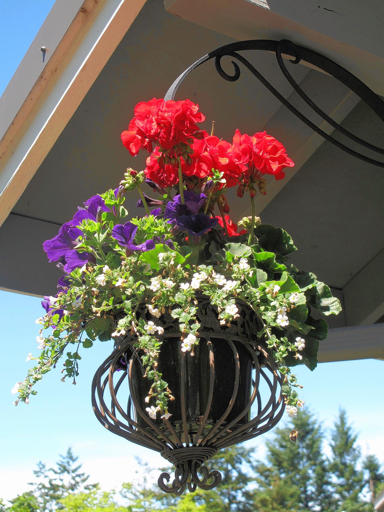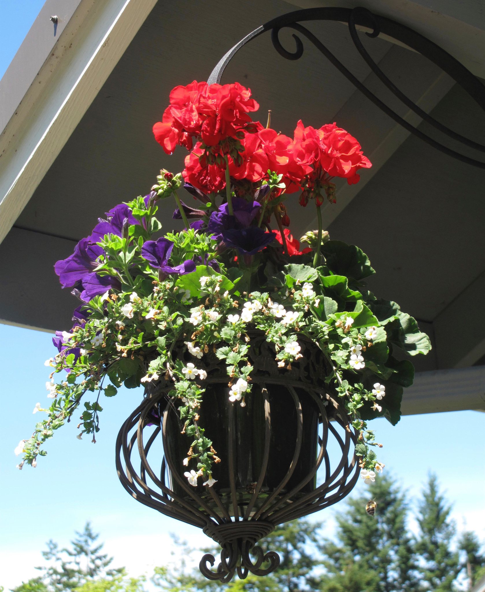 Hanging baskets have limited rooting space, so they need extra care once they become full and lush. “Daily watering is often necessary, and fertilizer should be routinely applied to keep the plants blooming well,” Finneran said.