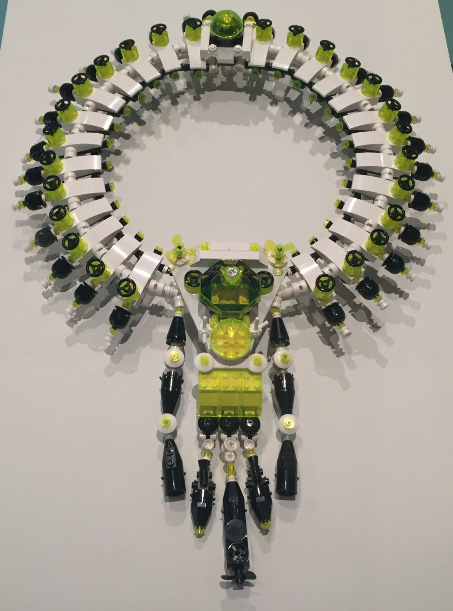 “I dumped all the white, black and yellow Legos on the floor and started to play, to see what shapes could mimic the design of the original necklace,” she said. “One thing I love about using Lego is how it reaches every part of the social spectrum — male, female, old, young — and across cultures. It’s a great way for people to connect with the jewelry.”