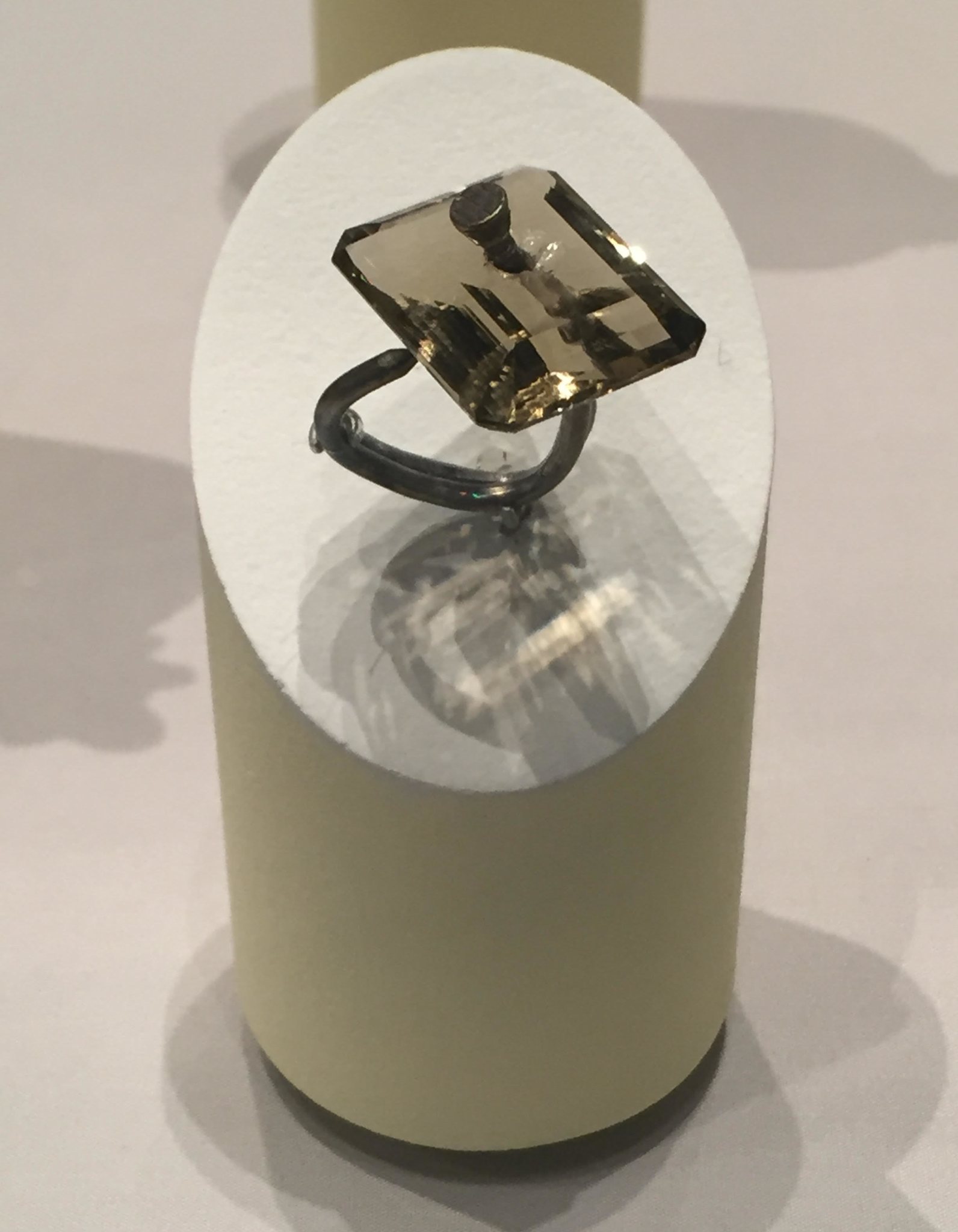 For his striking 2010 “Smoky Quartz on Countersink Nail” ring, Swiss jewelry designer Bernhard Schobinger shoved a nail he forged out of white gold through a large quartz stone faceted like a diamond, but intentionally chipped and imperfect, said Tigerman.