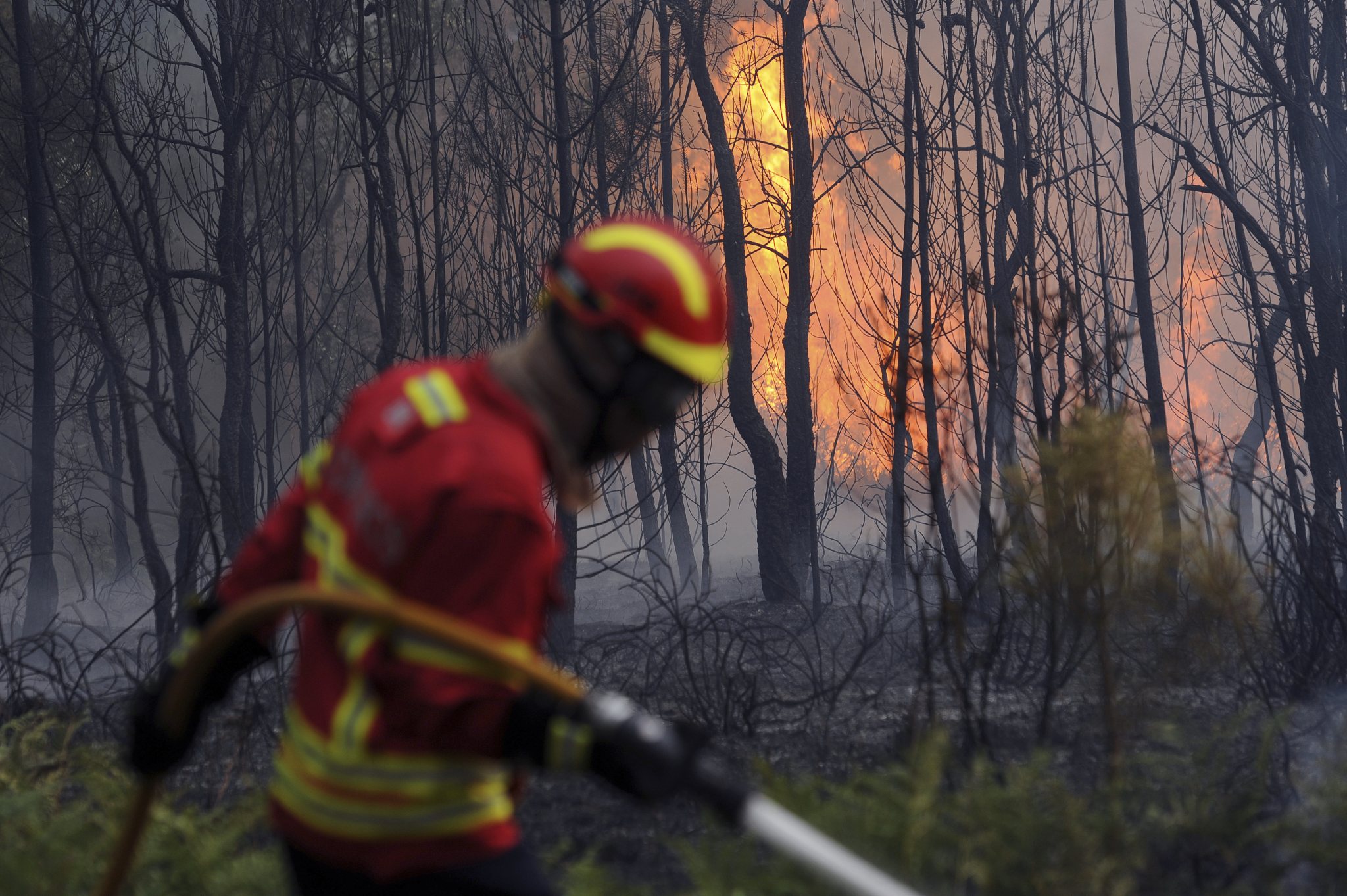 Interior Ministry official Jorge Gomes said firefighting crews were having difficulties battling the fire, which was “very intense” in at least two of its four fronts. He said authorities were worried about strong winds that could help spread the blaze further.