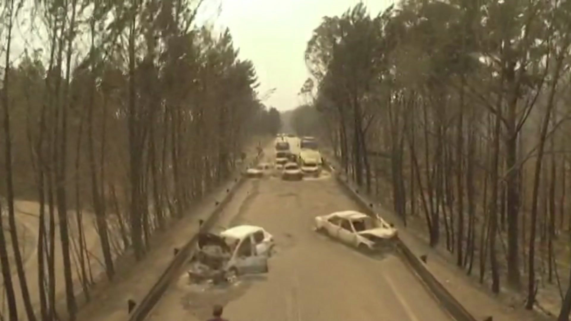 State broadcaster RTP showed terrifying images of several people on a road trying to escape the intense smoke that had reduced visibility to a few meters (yards). A young man shared a bottle of water with a distraught woman as she stumbled down the road.