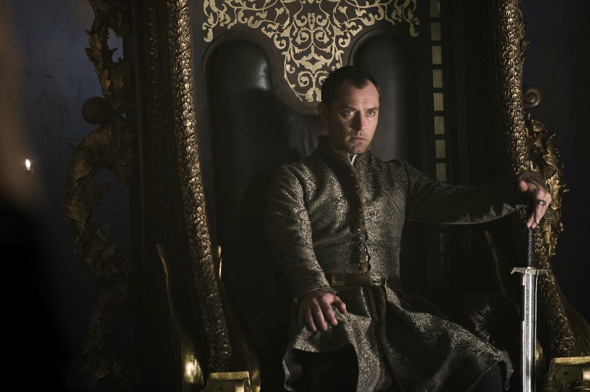 Uther doesn’t notice the lean and hungry look on his brother, the slithery Vortigern (Jude Law, supplying prerequisite villainous scowling).