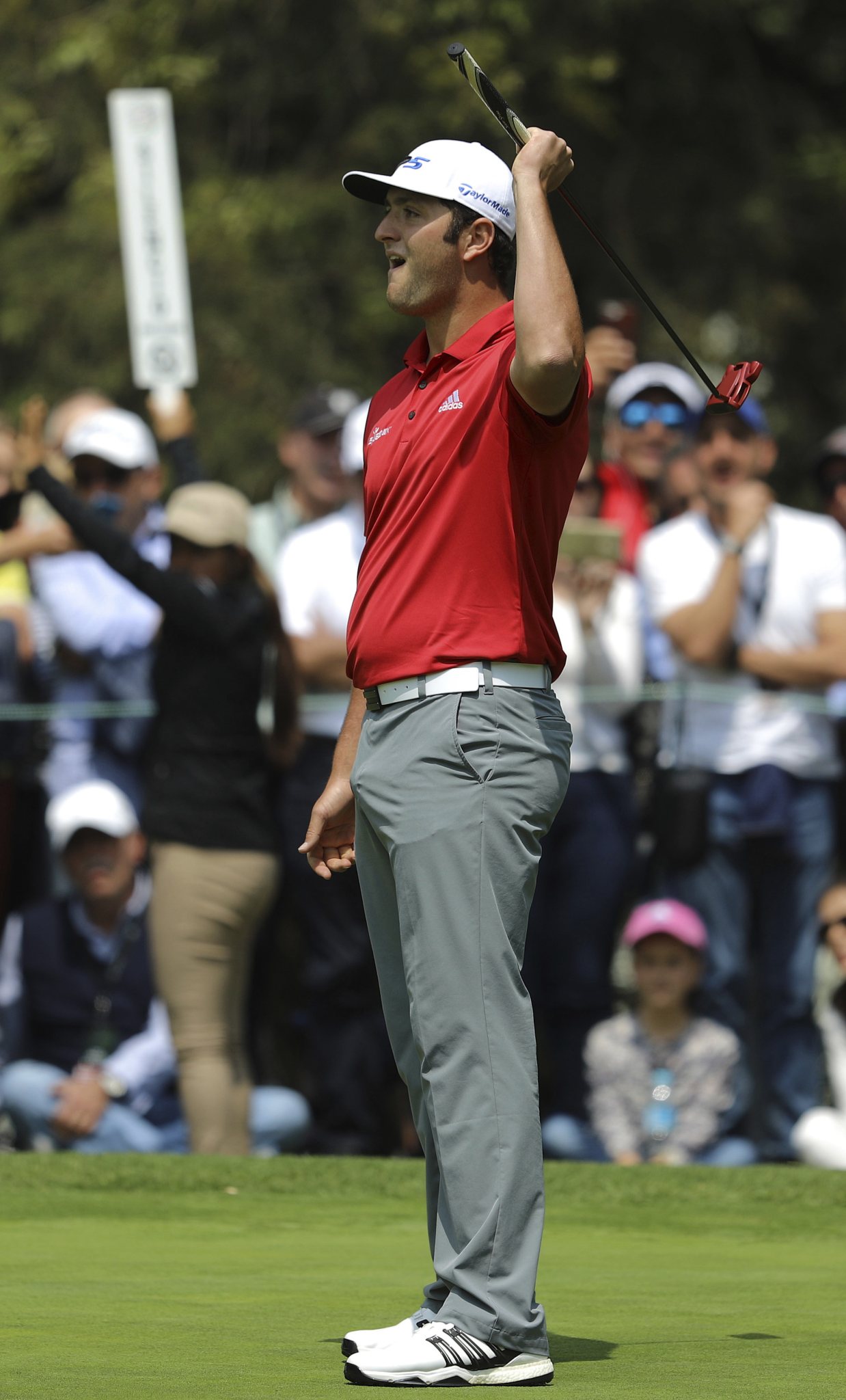Johnson’s 4-shot lead going to the back nine turned into a 1-shot deficit when Spanish rookie Jon Rahm ran off an eagle and 2 birdies at Chapultepec Golf Club. Johnson caught him with a birdie on the par-5 15th, and closed with 3 solid pars for a 3-under 68.