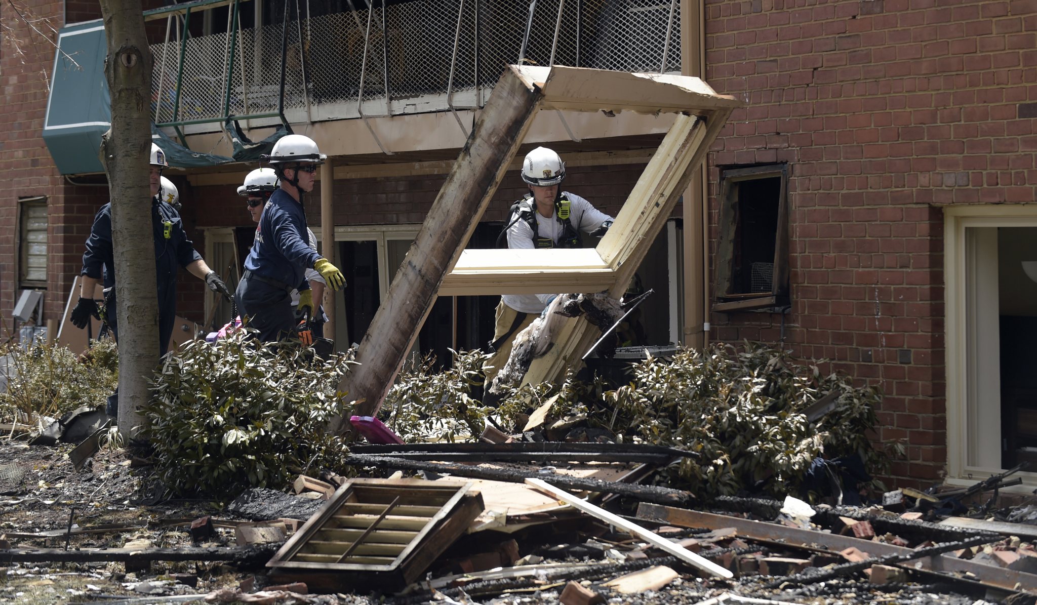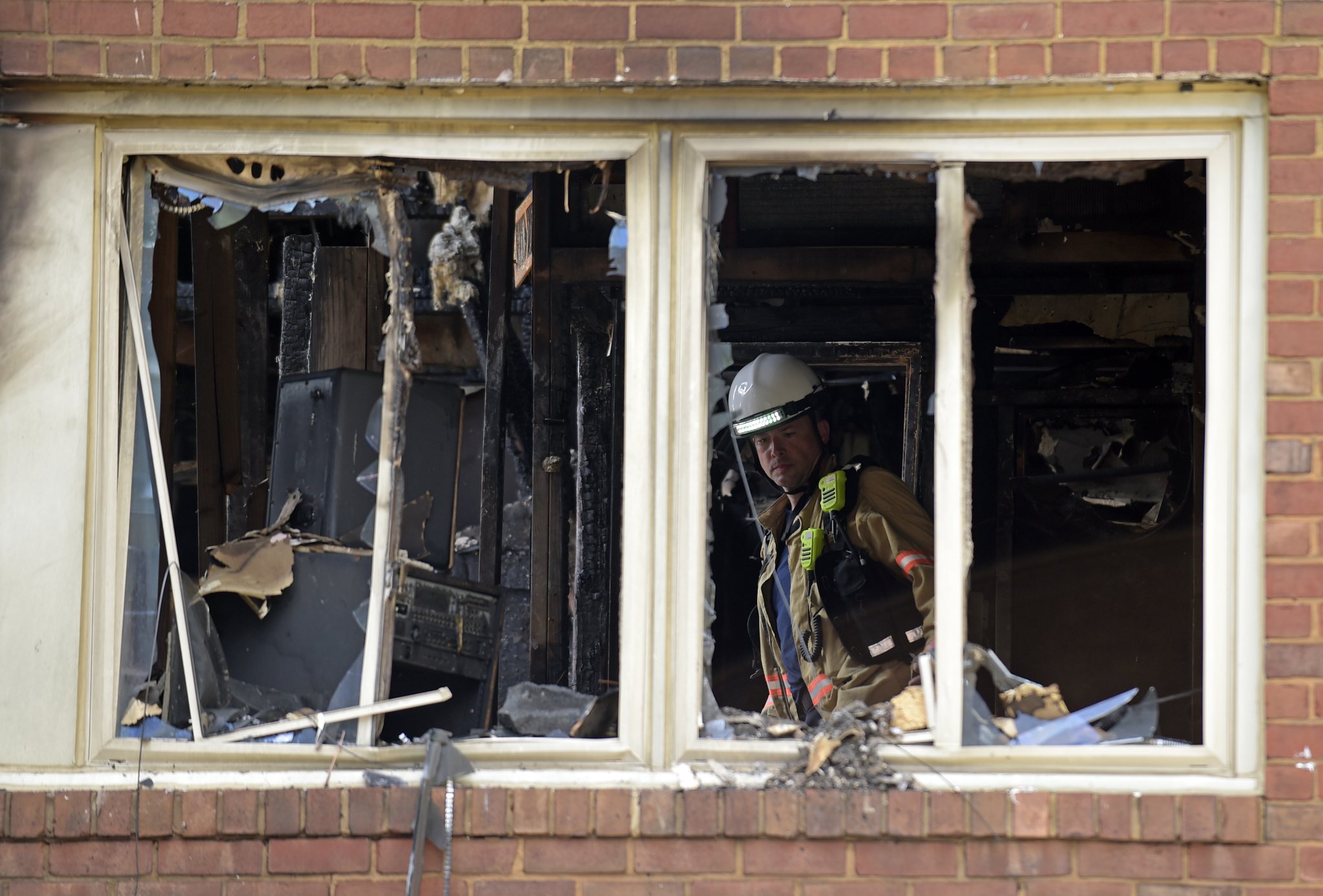 In a 911 call released Friday, when a dispatcher asks the caller the street number of the building on fire, the caller responds, “There’s no number on it now. The whole apartment is on fire, from bottom to top. It blew up. Everything’s collapsed.”