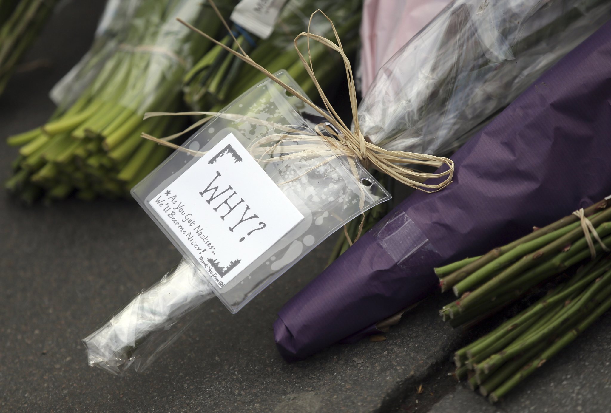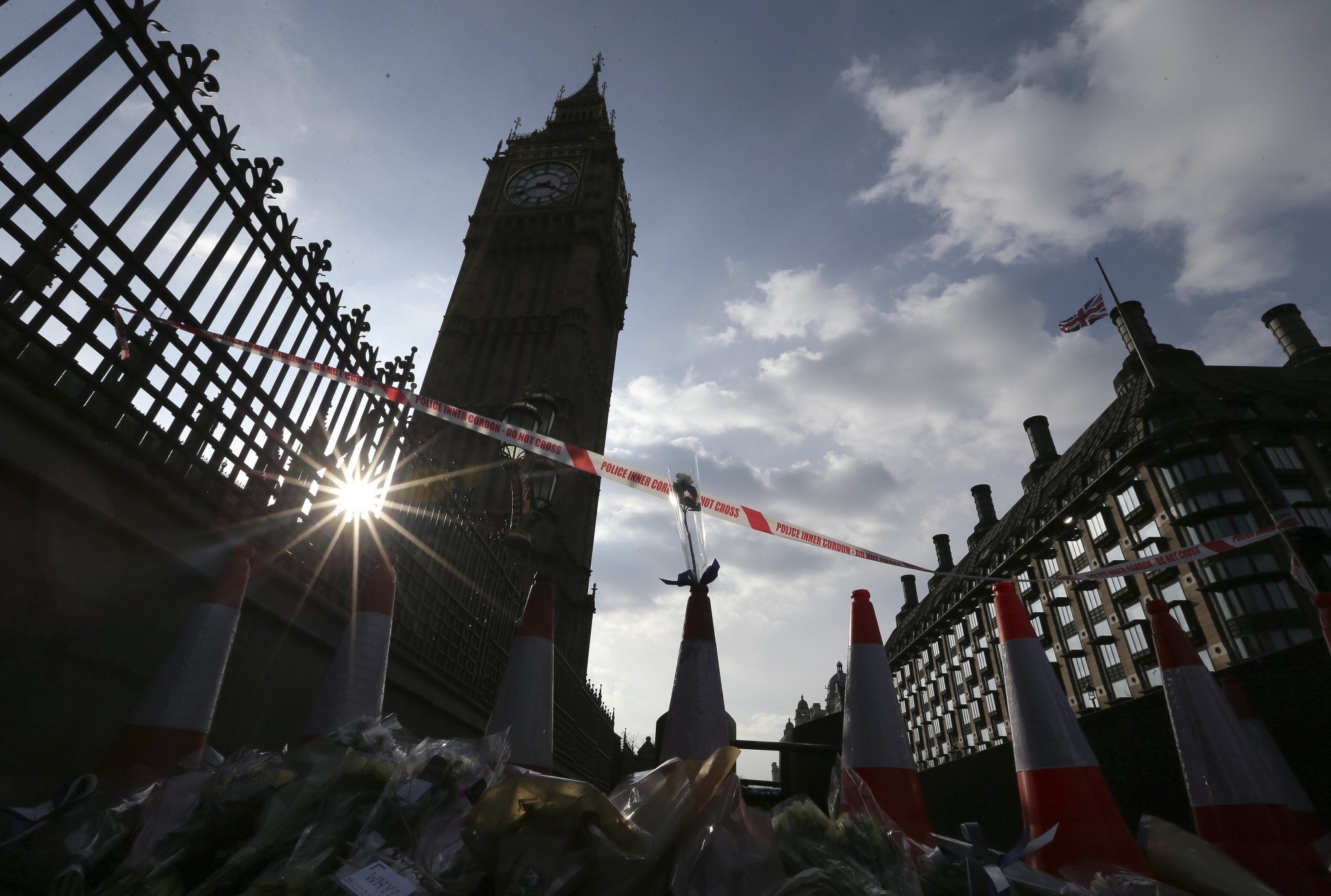 Floral tributes to the victims of Wednesday’s attack, are placed near the Houses of Parliament in London, Thursday March 23, 2017. On Wednesday a knife-wielding man went on a deadly rampage, first driving a car into pedestrians then stabbing a police officer to death before being fatally shot by police within Parliament’s grounds in London. (AP Photo/Tim Ireland)