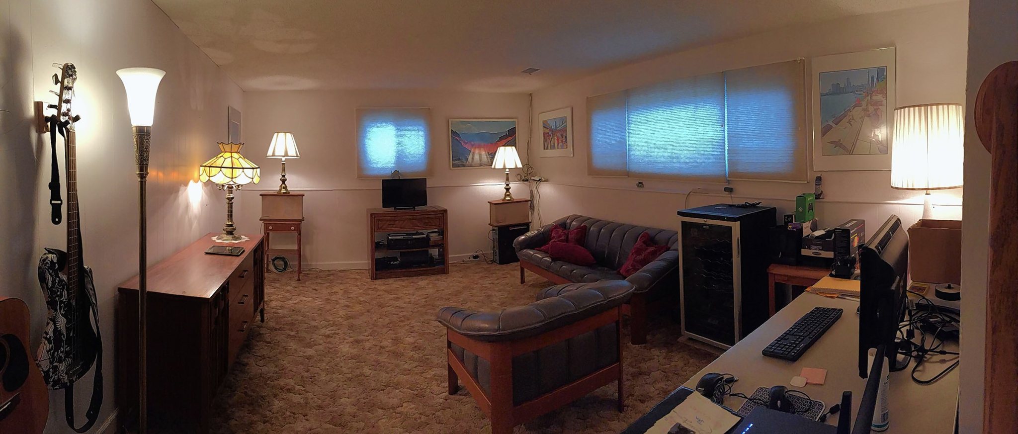 We tried to freshen it up in 1987 by painting the paneling, but the popcorn ceiling and stucco walls, along with the original carpeting, still shout 1970s. Our son used it for his place of refuge but he recently moved out, making it available for us to envision once again … but we desperately need help. We have lived here so long we can’t seem to see the potential that this space has anymore.