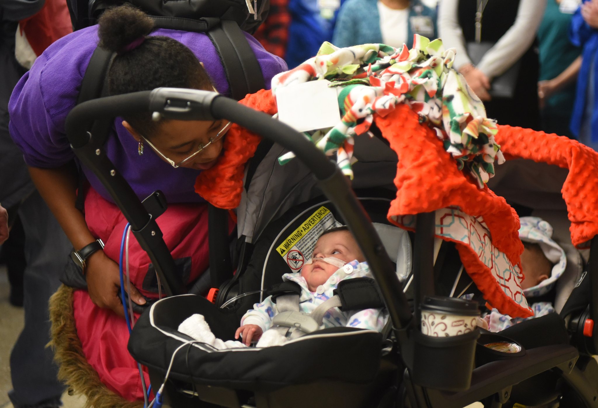 But Thursday was a day to celebrate, as doctors, nurses, therapists and other hospital staff members lined the hallway at the hospital’s main entrance and applauded to give the Mormances a proper send-off.