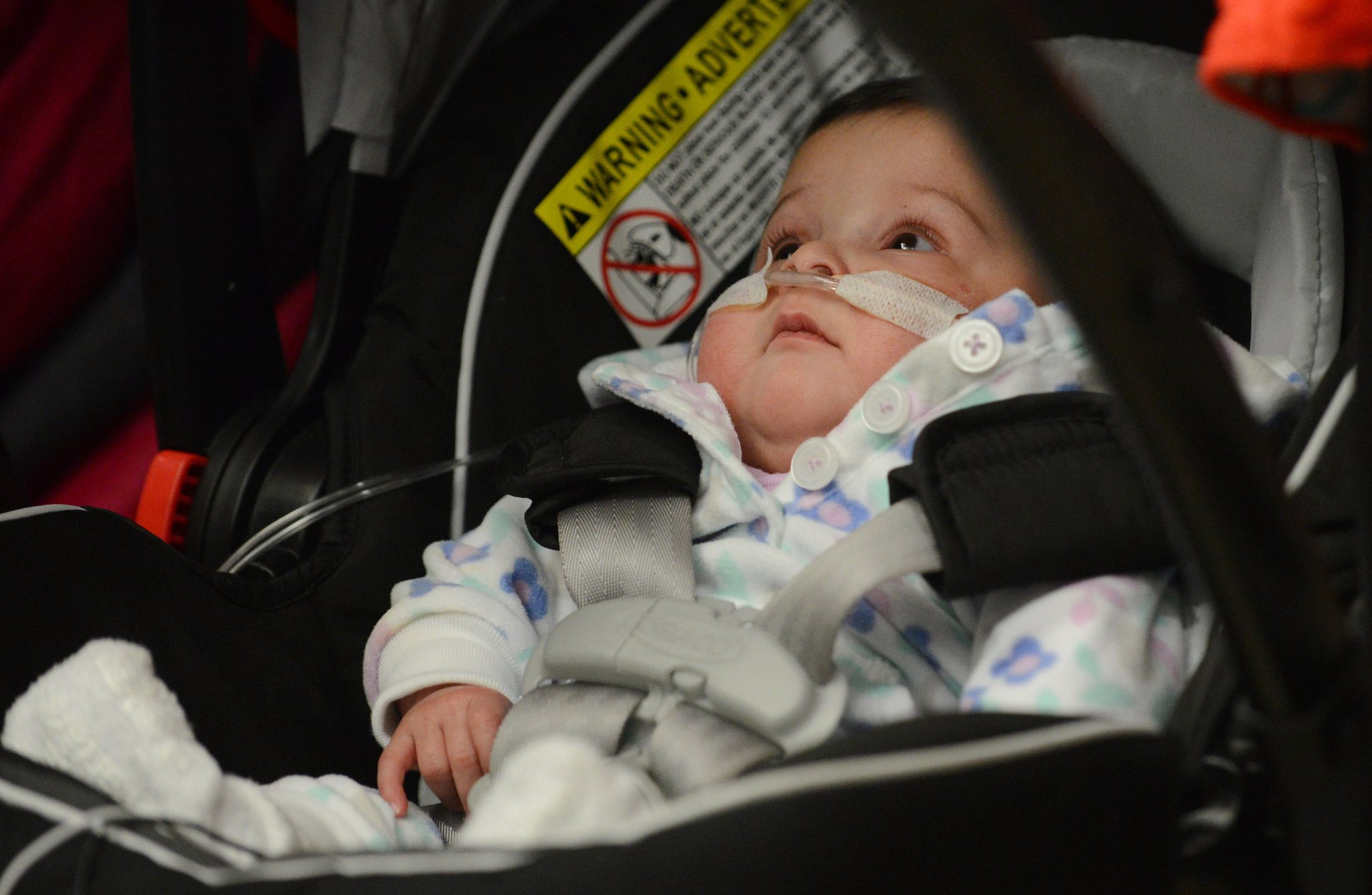 Kacie left the hospital Thursday hooked up to oxygen, which she may no longer need by next spring, Fisher said. She may also require more tube feedings for the time being.