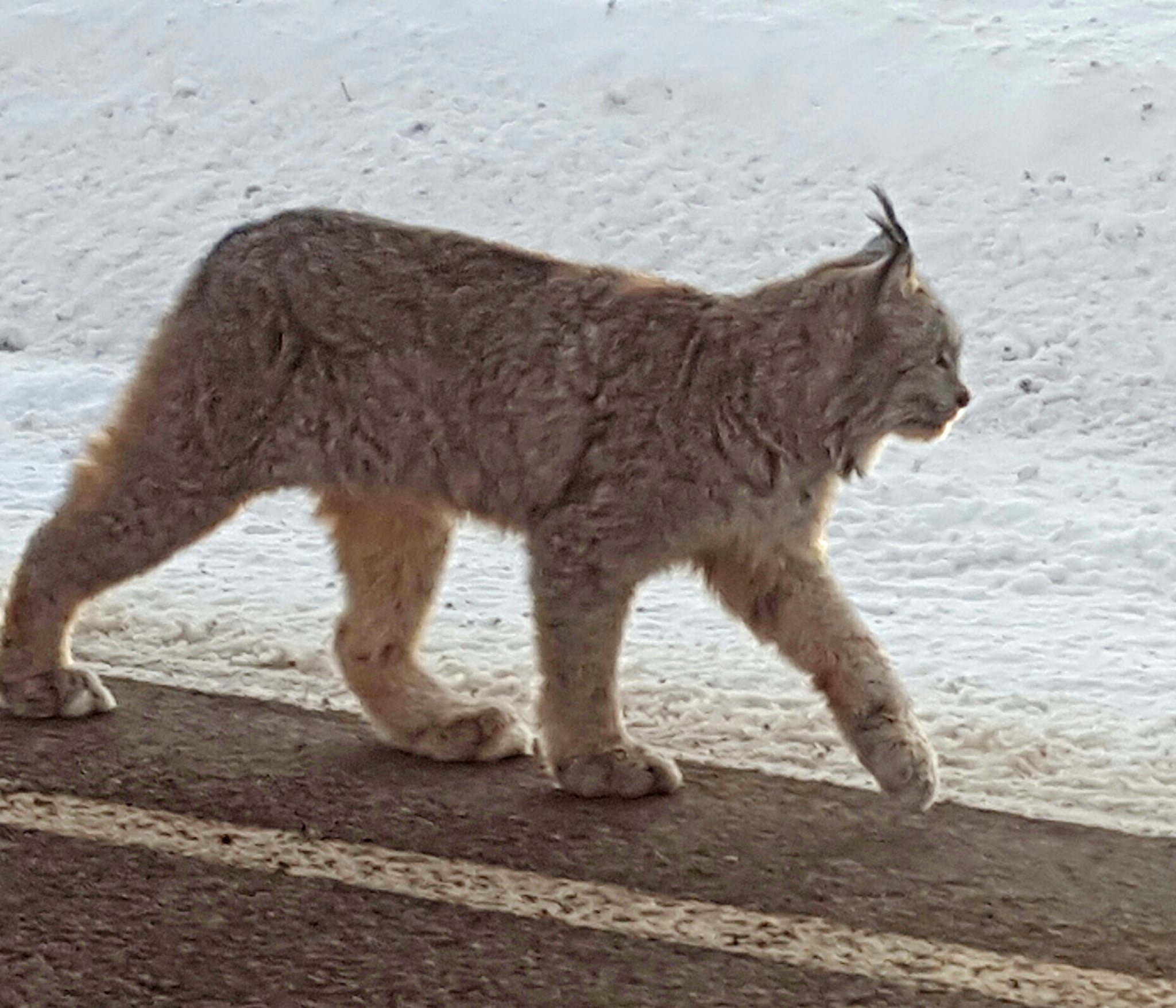 A lynx walks along a highway in Molas Pass outside Silverton, Colo., last December. Only about 50 to 250 lynx are believed to be living in the wild in Colorado.
