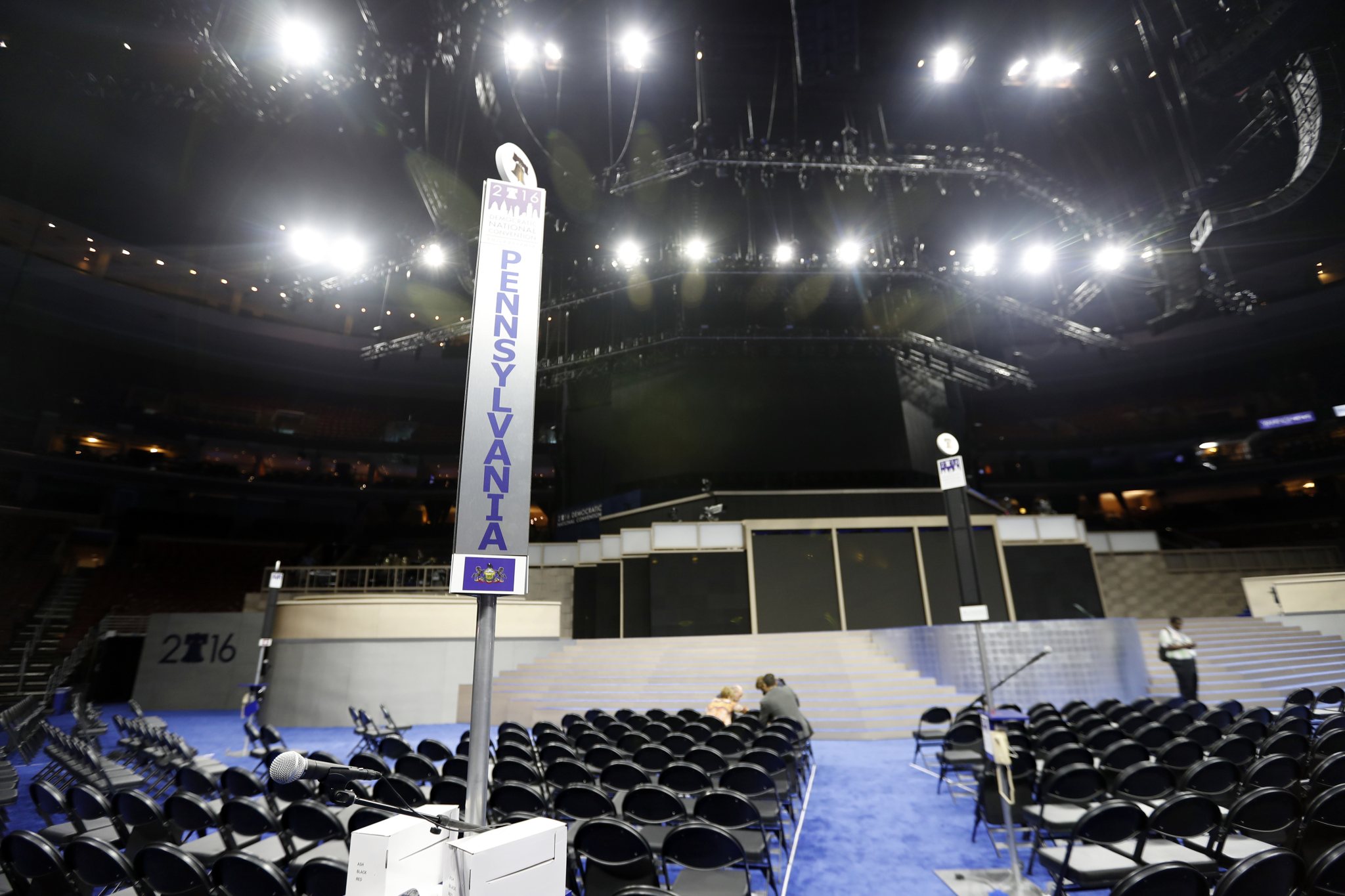 The Wells Fargo Center, home to the NHL’s Philadelphia Flyers and the NBA’s Philadelphia 76ers, is the convention site. The arena has been transformed with stages, platforms, cameras and lights. Democrats are hoping that city’s historical role in the founding of American democracy will serve as a powerful backdrop for the themes they’ll highlight.