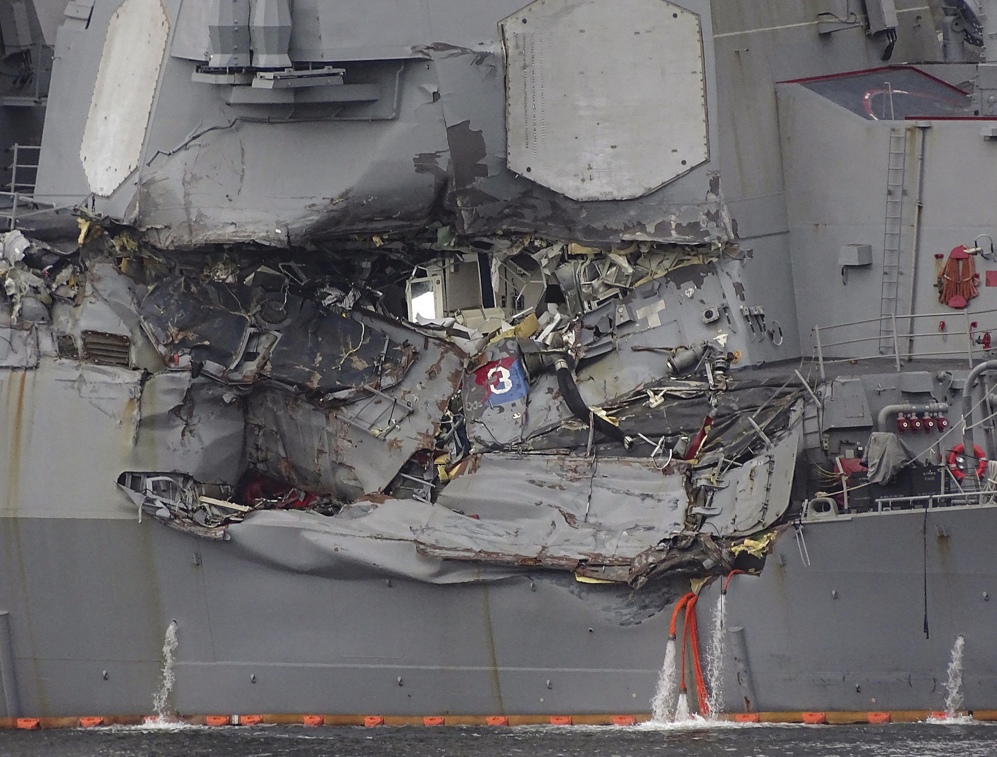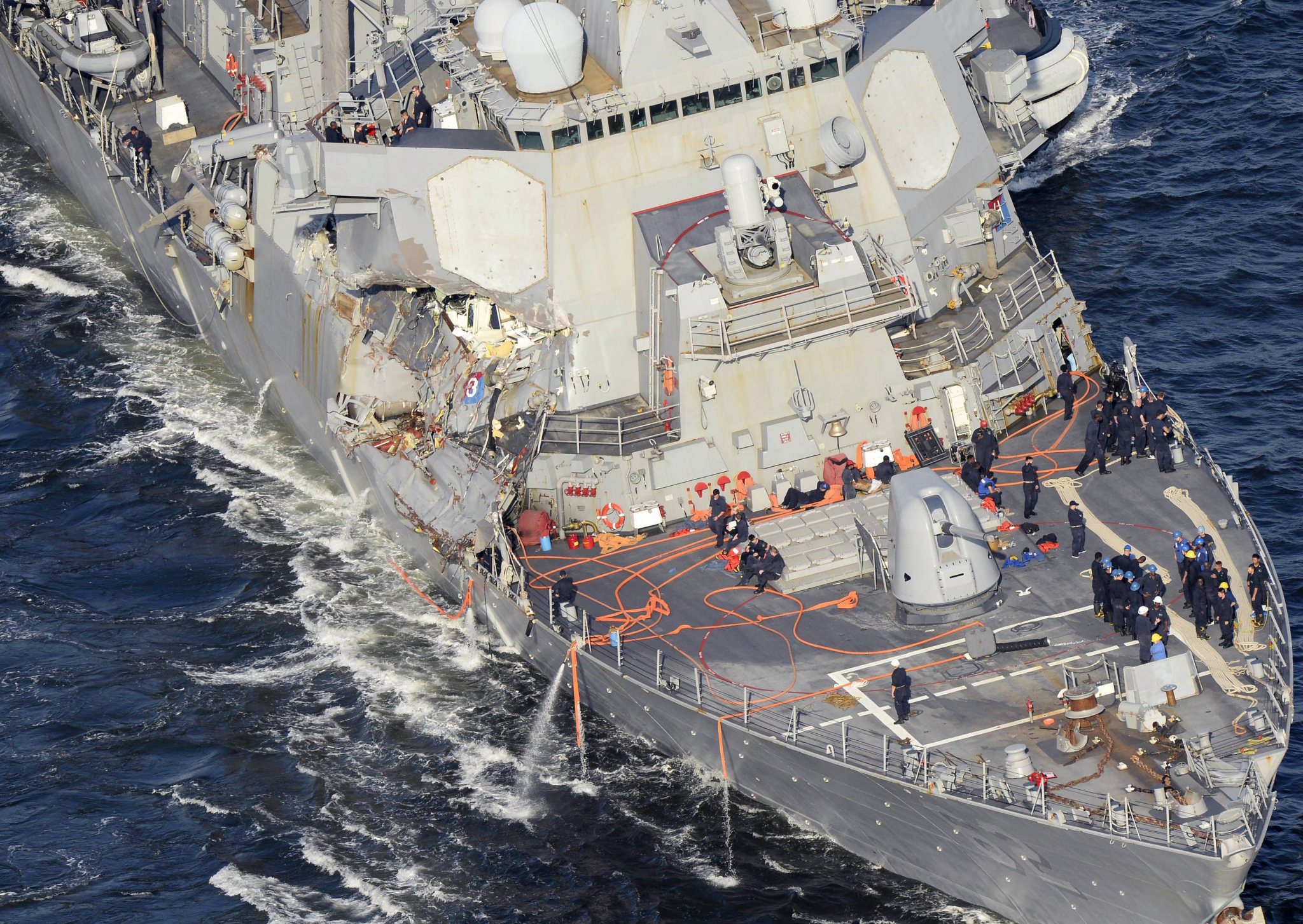 The ships collided about 2:20 a.m. Saturday, when the Navy said most of the 300 sailors on board would have been sleeping, and authorities have declined to speculate on a cause while the crash remains under investigation.