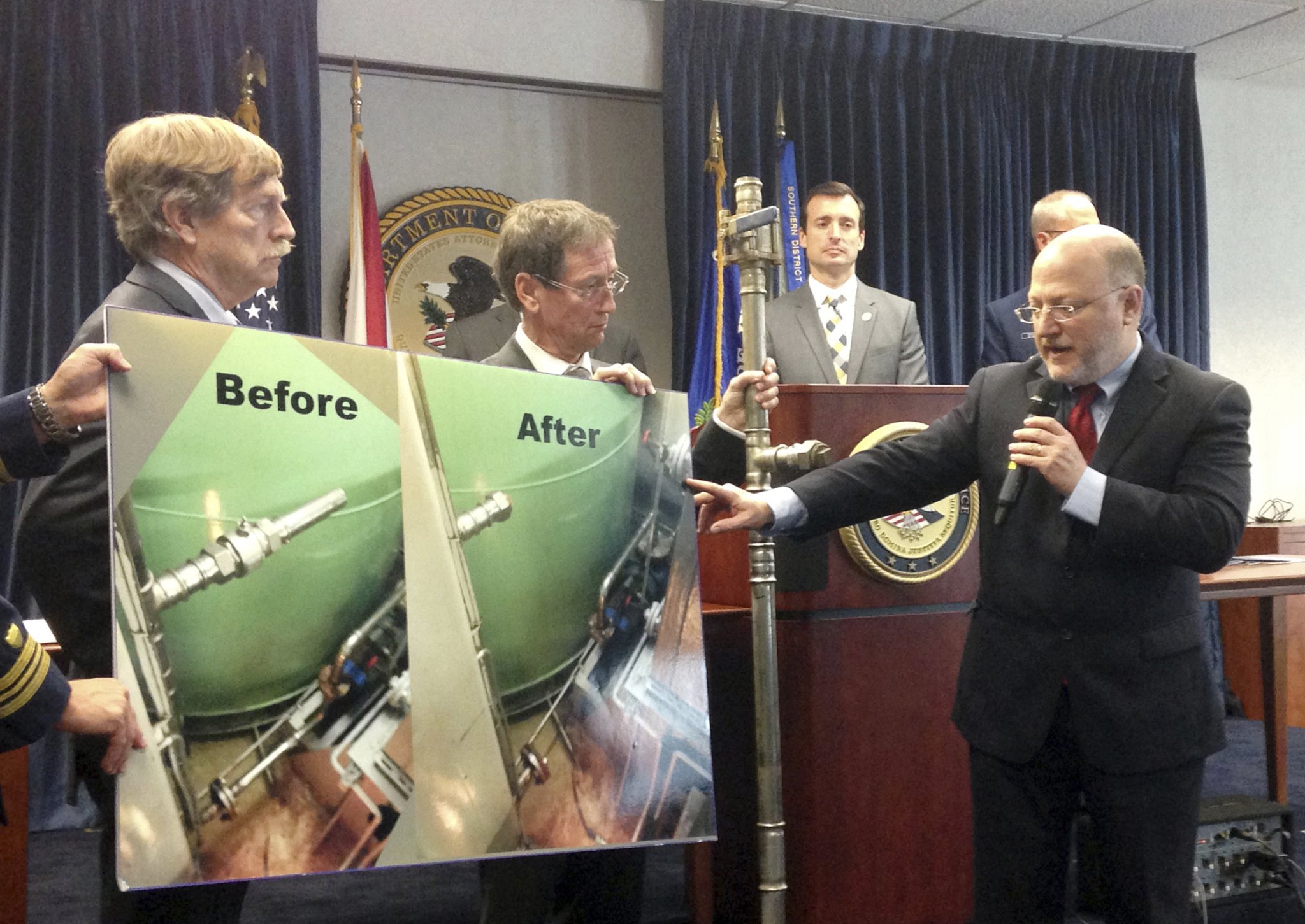 Ferrer said the illegal practices came to light when an engineer aboard the Caribbean Princess discovered the “magic pipe” in 2013 off the coast of Great Britain and told investigators about it. Authorities later learned the 952-foot ship had been illegally discharging oily water into the ocean since 2005.
