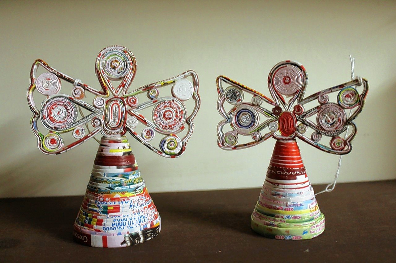 Gifts of the World features many different Nativities and ornaments that are made by artisans in Peru, Haiti, Kenya, Bangladesh, Vietnam and many more developing countries. The materials used are often recycled such as cut metal from recycled oil drums in Haiti, recycled newspaper, pop bottle tops, banana bark and other natural fibers, gourds and coconut shells.