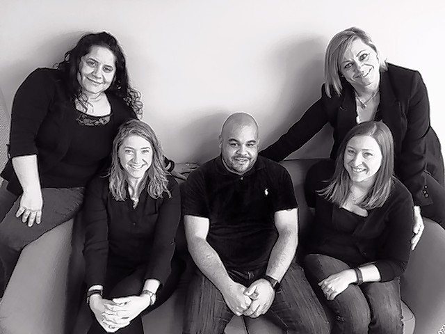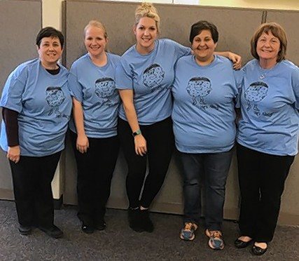 Nadia Willis, from left, Laurie Penkava, Landon Willis, Heather Smith and Melissa Carnrite with Team Landon’s Angels from Rabine Group. The team is having great success with weekly group theme lunches. (Courtesy of Melissa Carnrite)