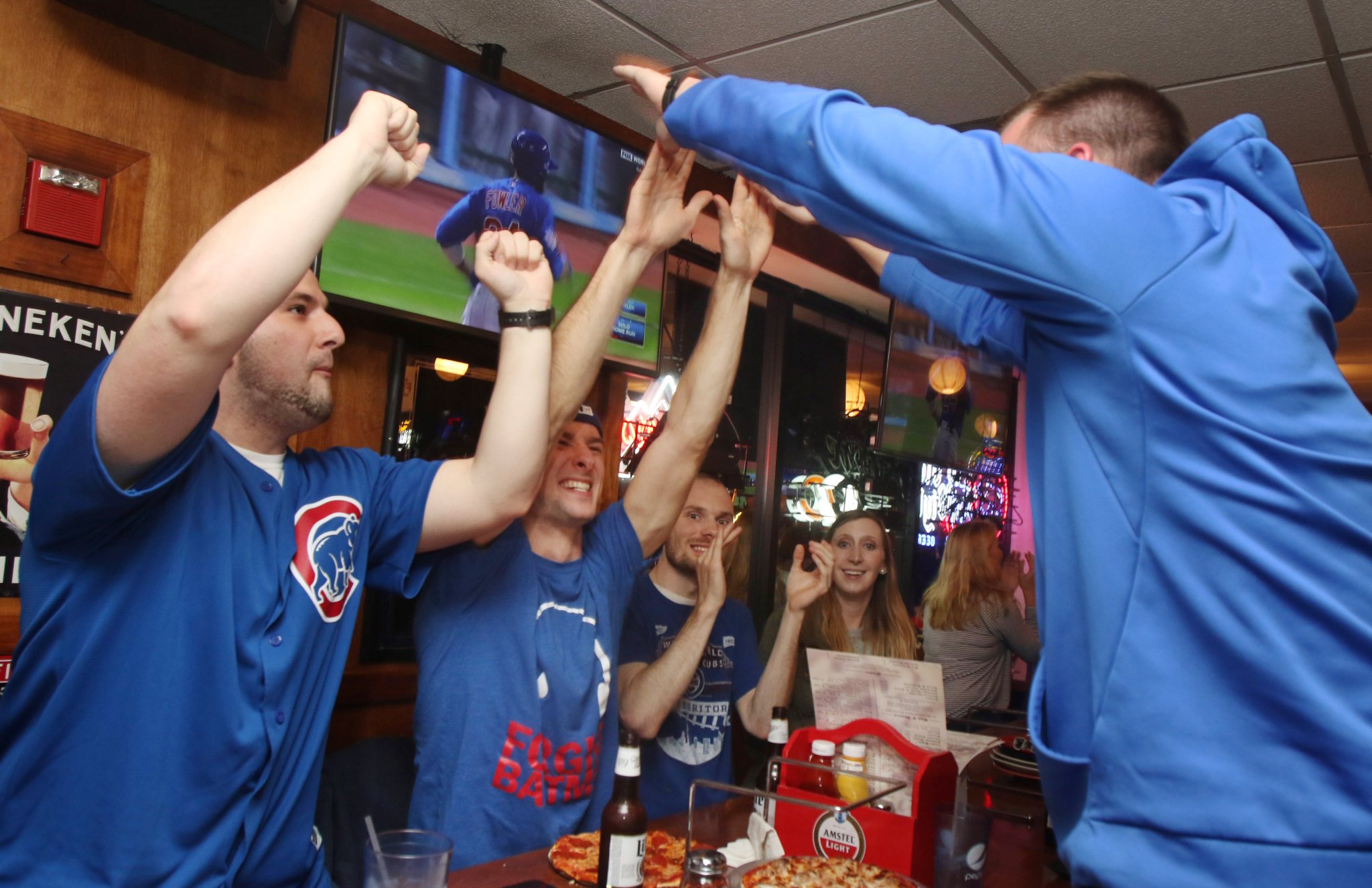 When Javier Baez’s homer at the start of the fifth inning made it 4-1 for the Cubs, Jeff Eder of Lindenhurst celebrated with his table mates at Hitz.