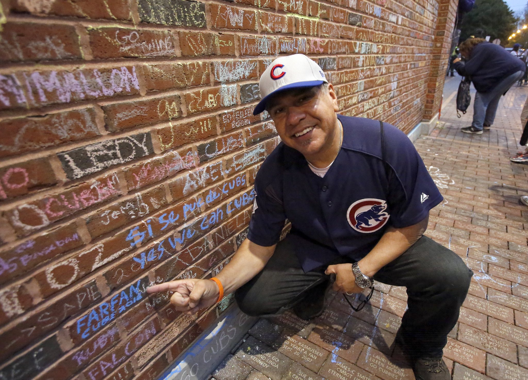 Enrique Farfan of South Elgin traveled to Wrigley Field for the game. He wore a World Series commemorative Cubs jersey and cap to support his team.