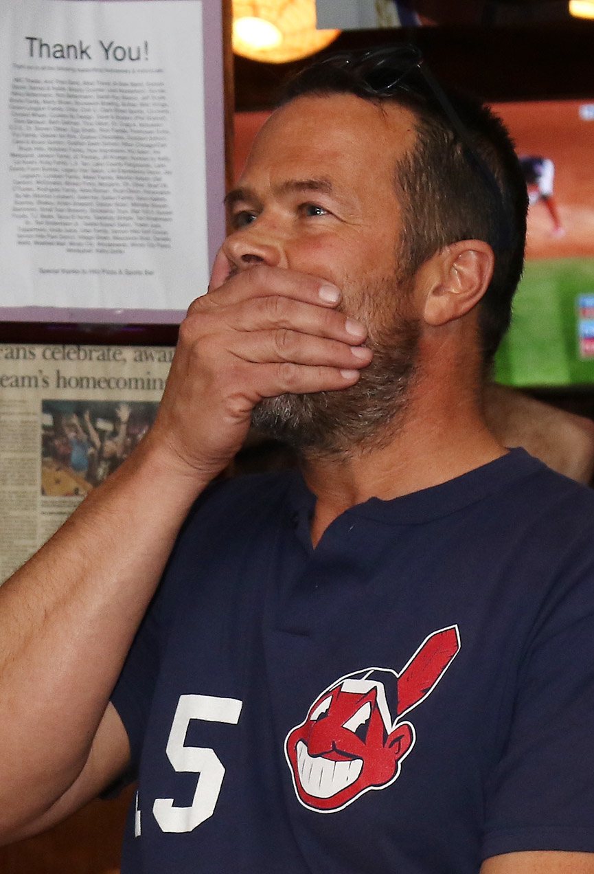 Surrounded by fans in Cubbie Blue at Hitz, Vernon Hills resident Rick Grant looked out of place in his Indians T-shirt Wednesday night.