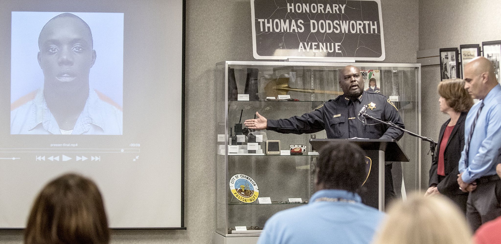 Prosecutors say the suspect, Robbie Patton, was sentenced in April to eight months in prison after pleading guilty to firing a gun at an occupied vehicle but was instead sent to an Illinois Department of Corrections boot camp. Police believe he is still in the Champaign area and may be armed.
