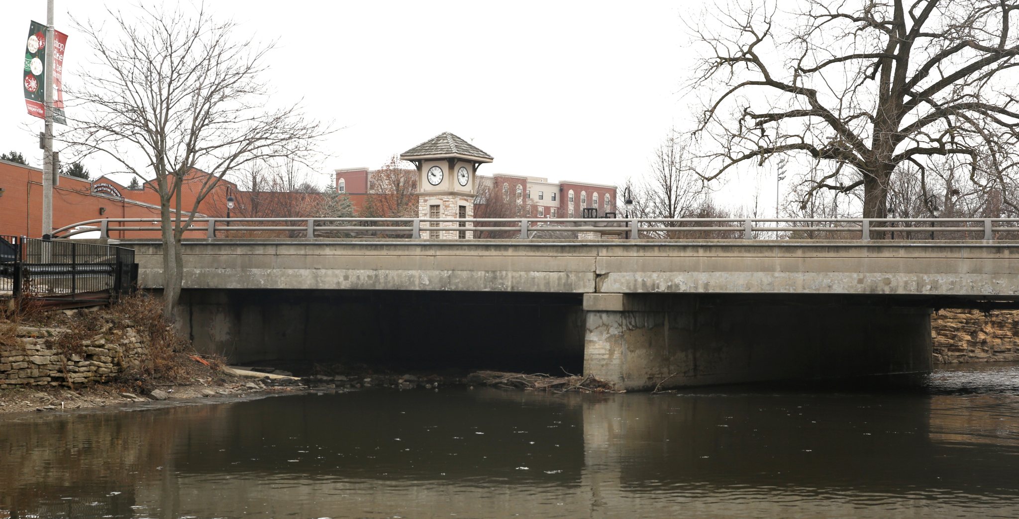 Fire trucks have been told to use nearby bridges on Eagle or Main streets, and the city has deployed smaller-than-usual snow removal trucks to clear the bridge. Ambulances heading to nearby Edward Hospital can still pass.