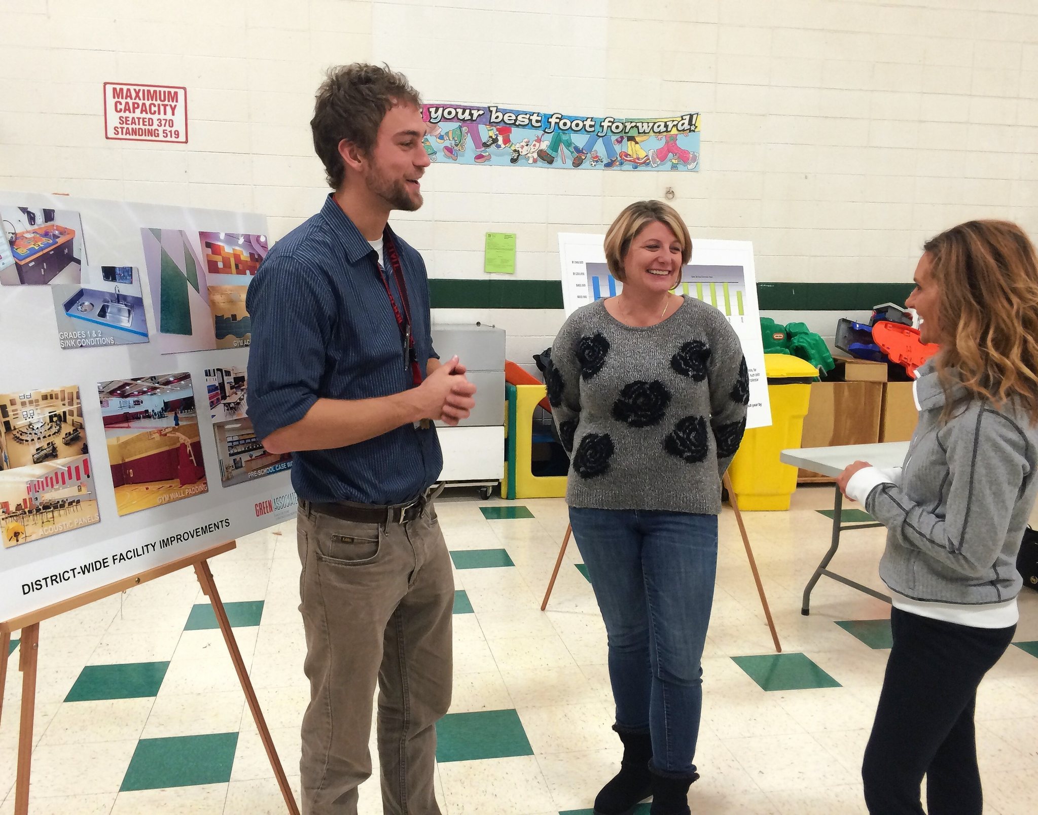 The forum Thursday lasted just more than two hours. At about 5:30 p.m., roughly a dozen people visited stations set up in the Evergreen gym where they could meet with architects, the district’s financial consultants and school principals.