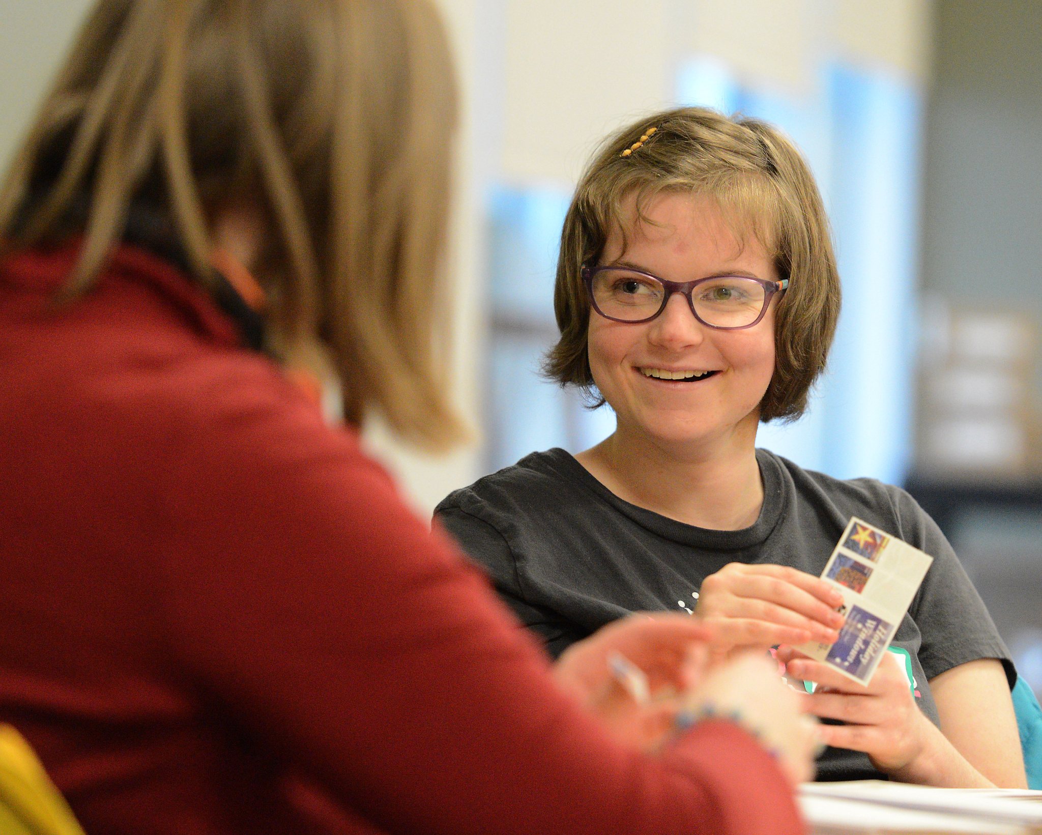 Hollie Konrady, 29, of Montgomery has Carpenter’s syndrome and has been attending The Joshua Tree Community for two years. She loves the field trips, games — especially Wii Bowling — and book club.