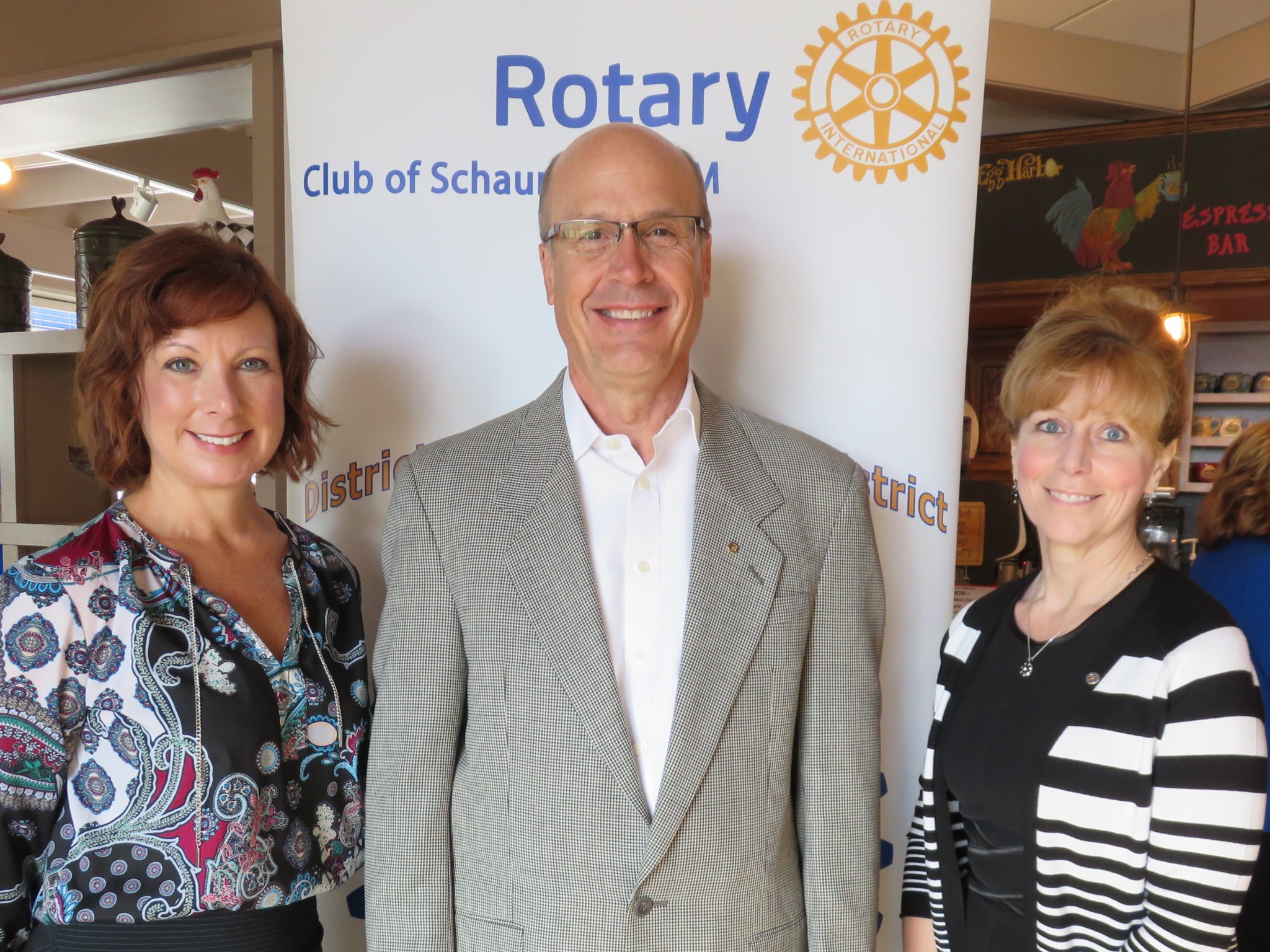 Tim Gerhardt, Schaumburg A.M. Rotary Club president, is pictured with Ann Everhart and Sharon Perry, new club inductees. (Courtesy of Schaumburg A.M. Rotary Club)