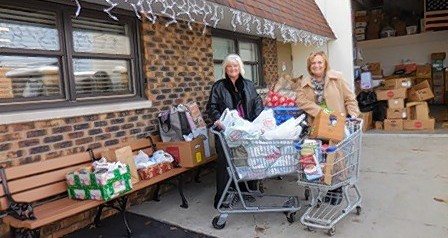 Susan Camiliere and her business partner, Karen Moersch, with RE/MAX Central, Roselle, donated food from their client holiday party to the Hanover Township Food Pantry on Dec. 6. (Courtesy of Susan Camiliere)